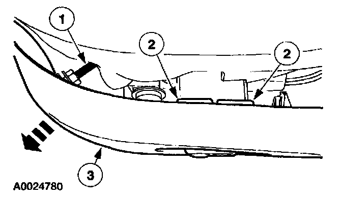 2 Install the outboard side shield front retainer (not shown).