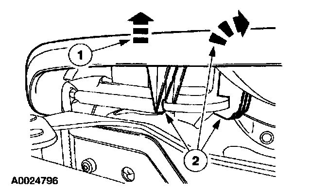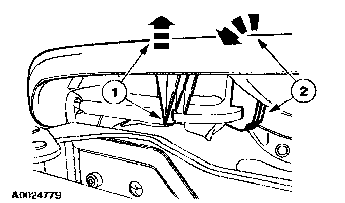 1 Carefully pull out to release the side shield front retainer (not shown).