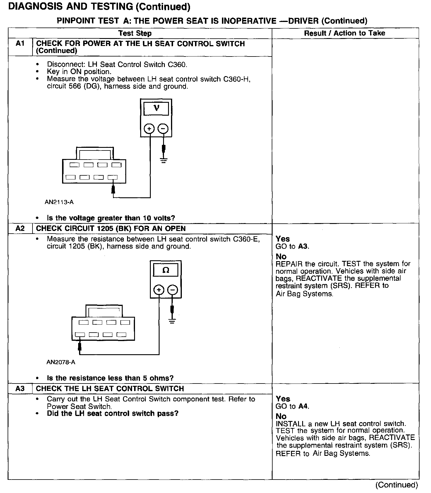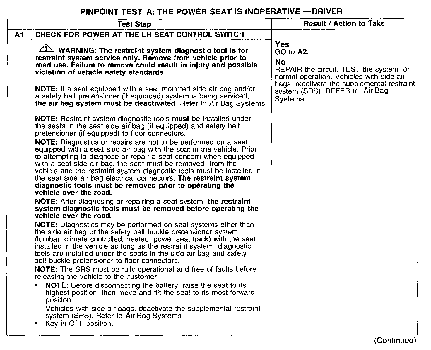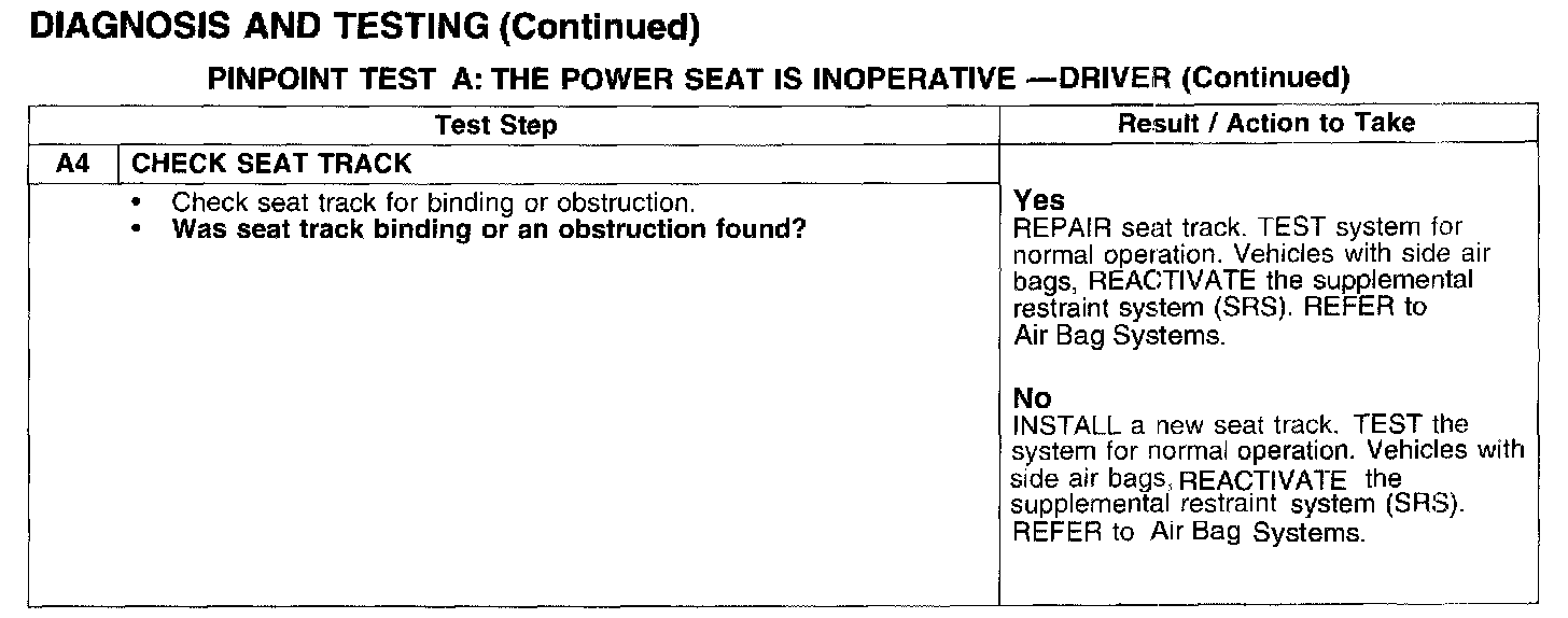 PINPOINT TEST A: THE POWER SEAT IS INOPERATIVE - DRIVER