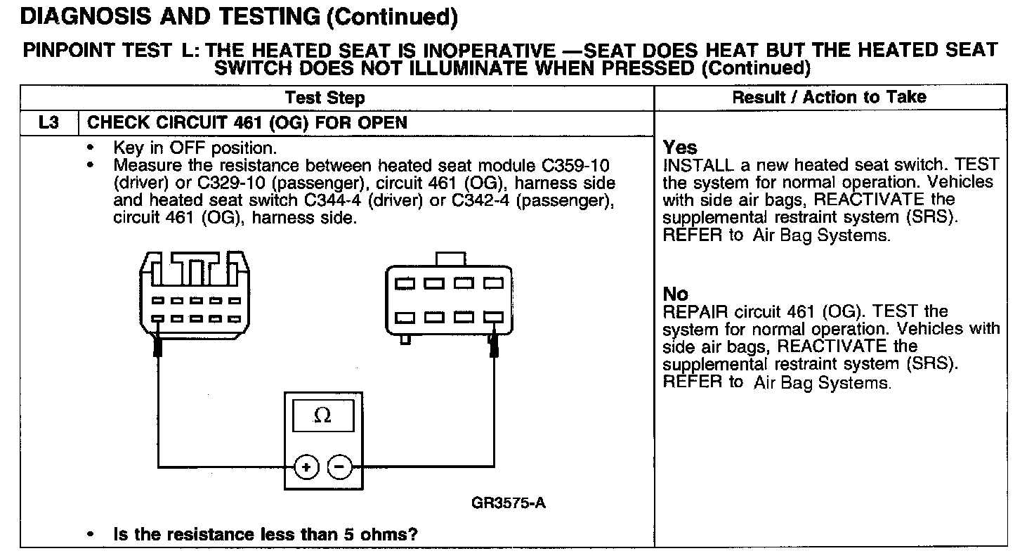 PINPOINT TEST L: THE HEATED SEAT IS INOPERATIVE - SEAT DOES HEAT BUT THE HEATED SEAT SWITCH DOES NOT ILLUMINATE WHEN PRESSED