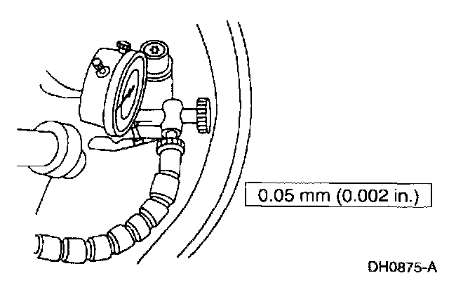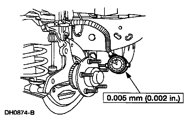 10. Install a new front hub if the total indicated runout exceeds the maximum specification.