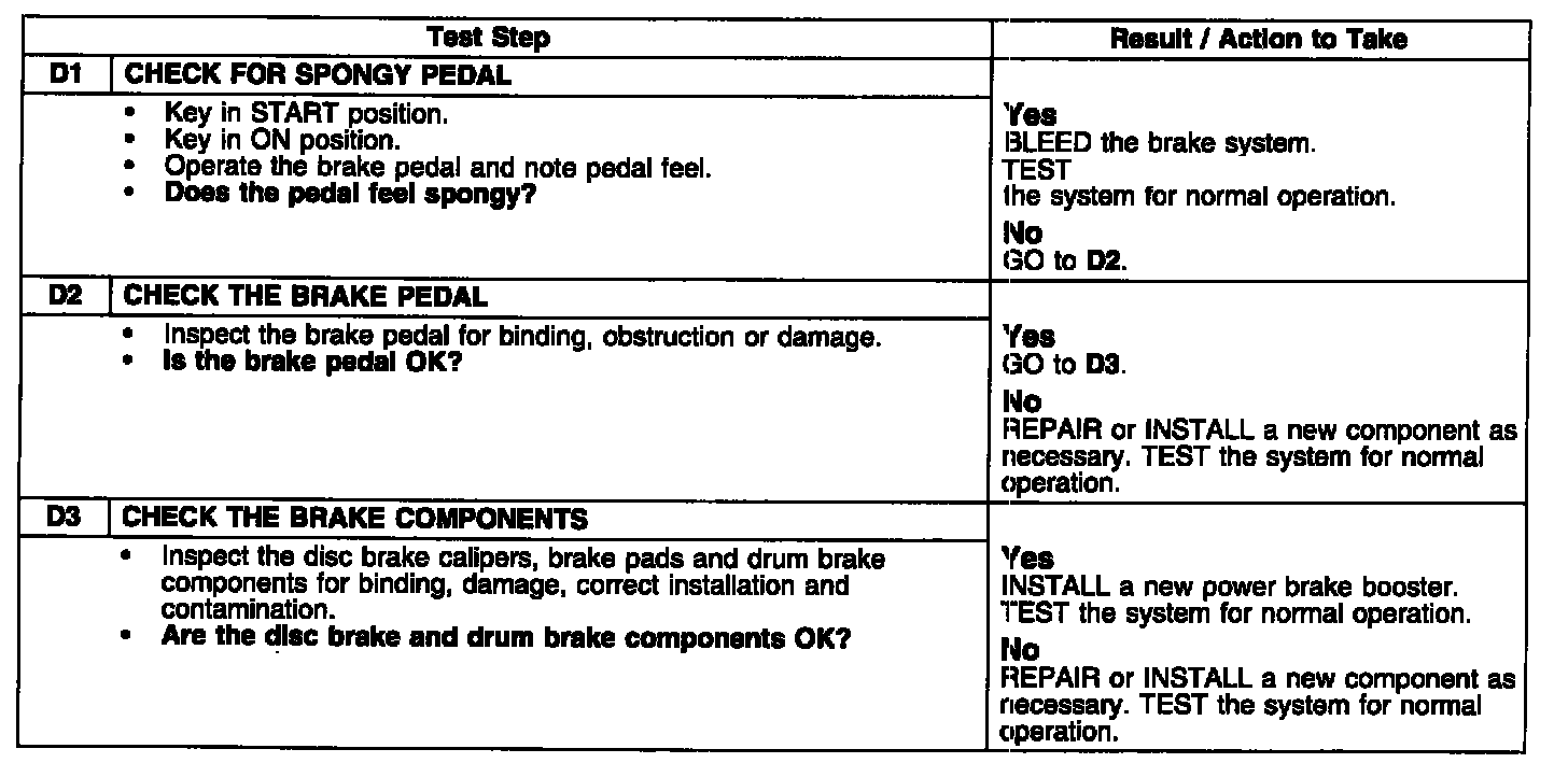 PINPOINT TEST D: EXCESSIVE/ERRATIC BRAKE PEDAL TRAVEL