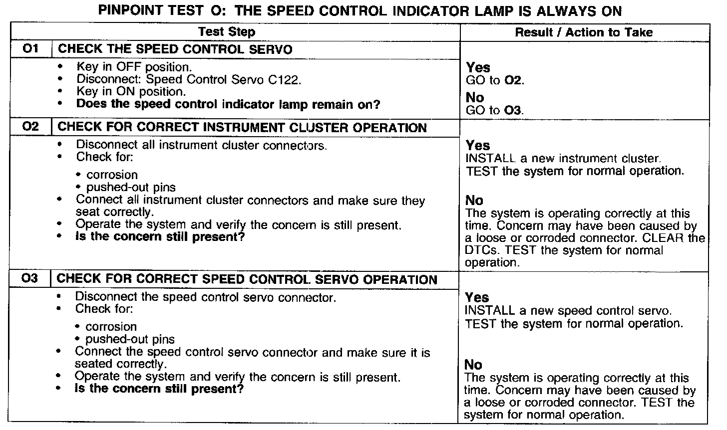 PINPOINT TEST 0: THE SPEED CONTROL INDICATOR LAMP IS ALWAYS ON