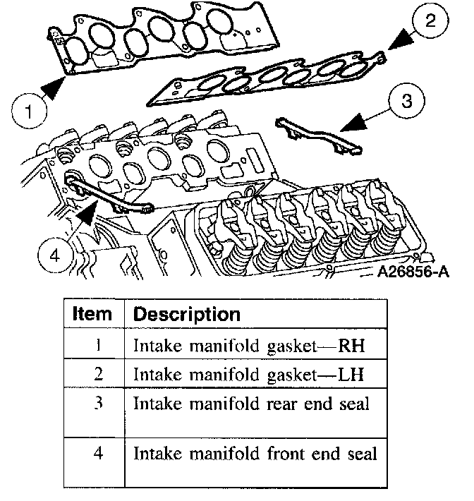 1. Refer to the illustration for intake manifold sealing component locations.