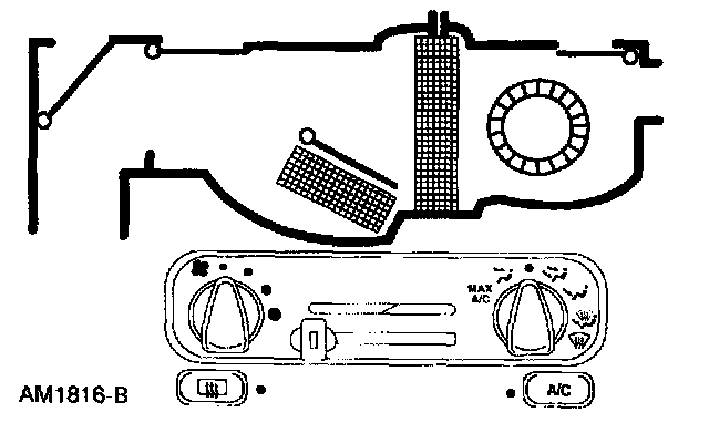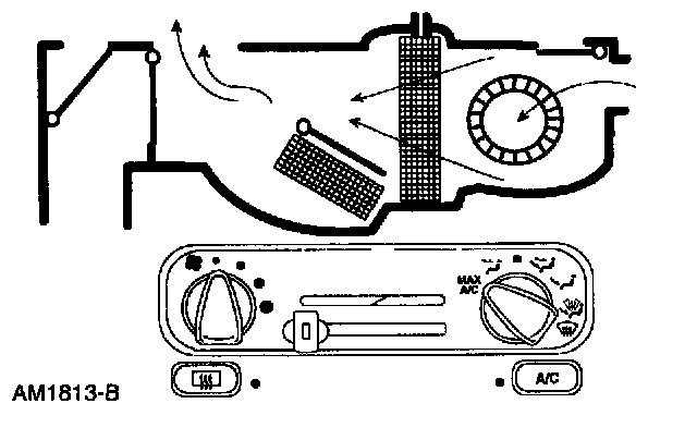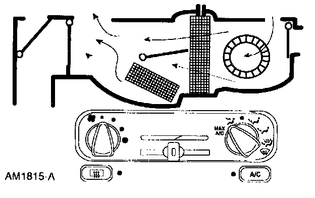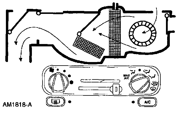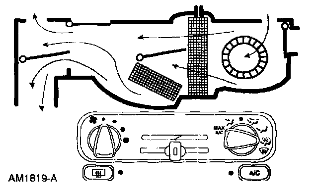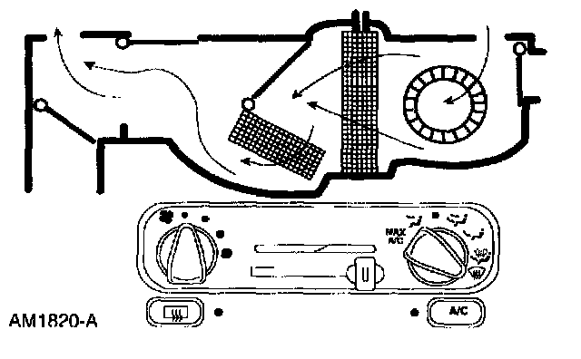 ^ The air inlet door vacuum control motor is at full vacuum, closing off outside air and admitting only recirculated air.