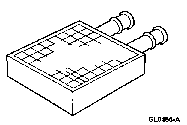 The heater core consists of fins and tubes arranged to extract heat from the engine coolant and transfer the heat to air passing through the plenum.