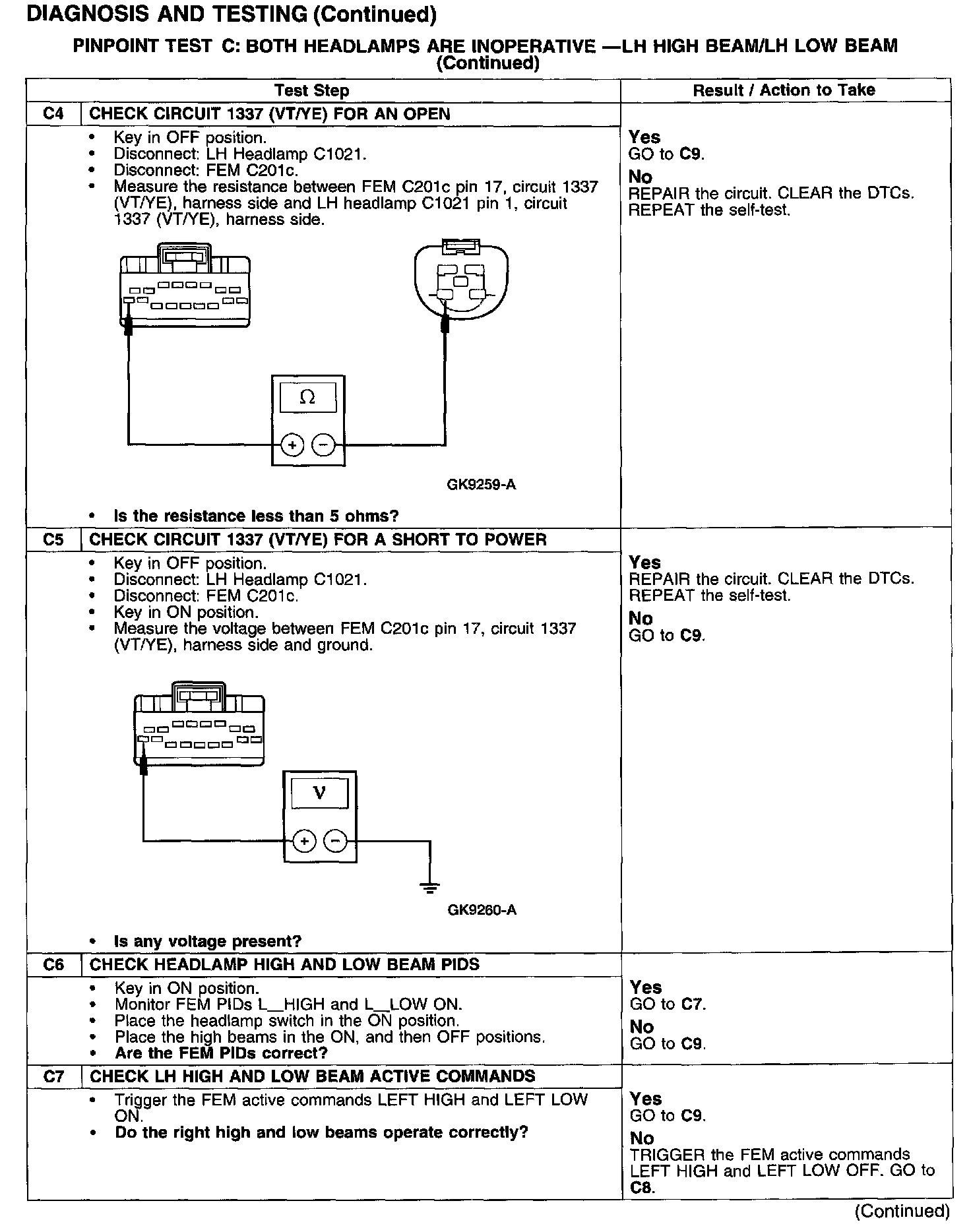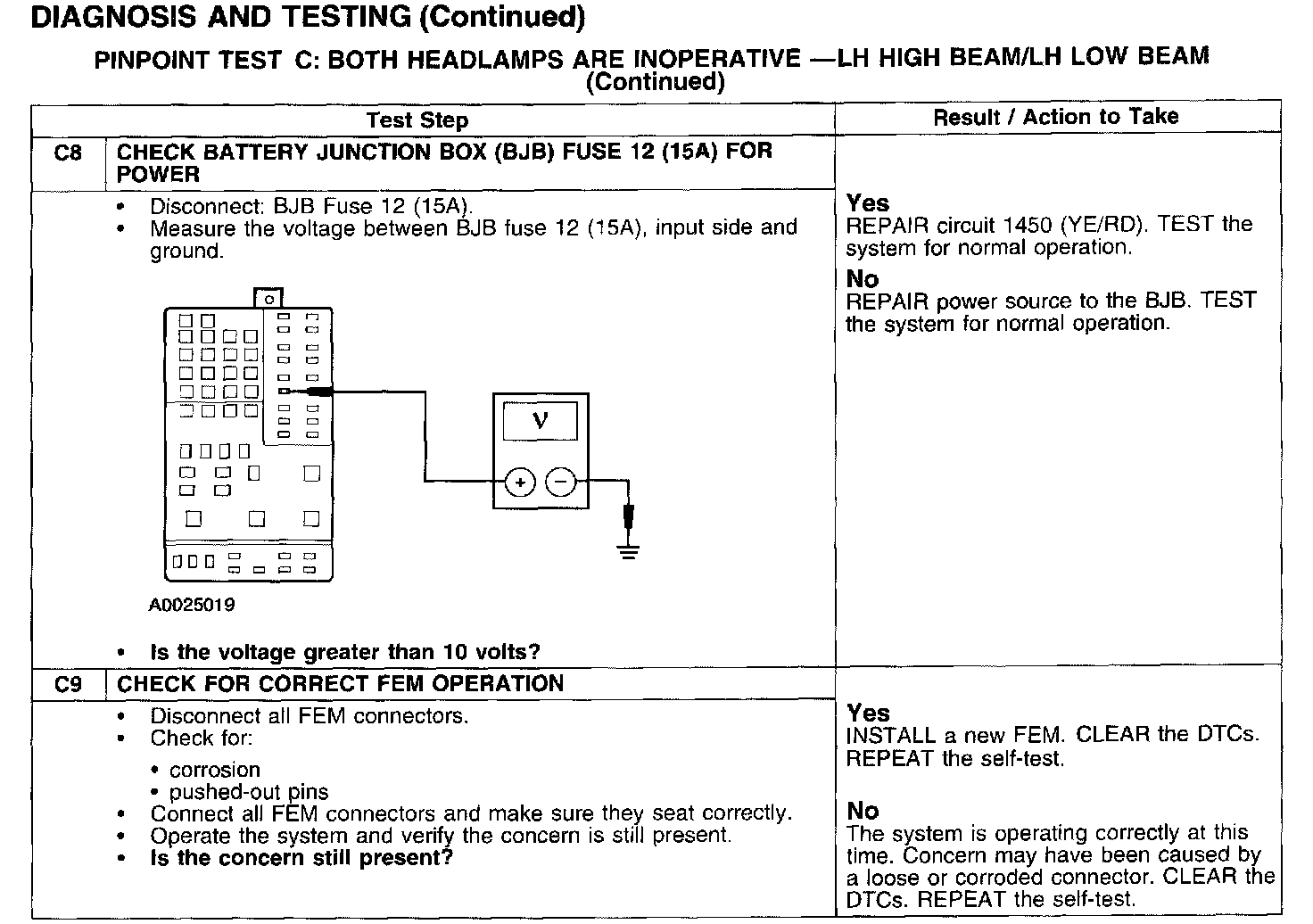 PINPOINT TEST C: BOTH HEADLAMPS ARE INOPERATIVE - LH HIGH BEAM/LH LOW BEAM