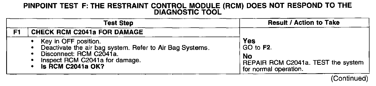 PINPOINT TEST F: THE RESTRAINT CONTROL MODULE (RCM) DOES NOT RESPOND TO THE DIAGNOSTIC TOOL