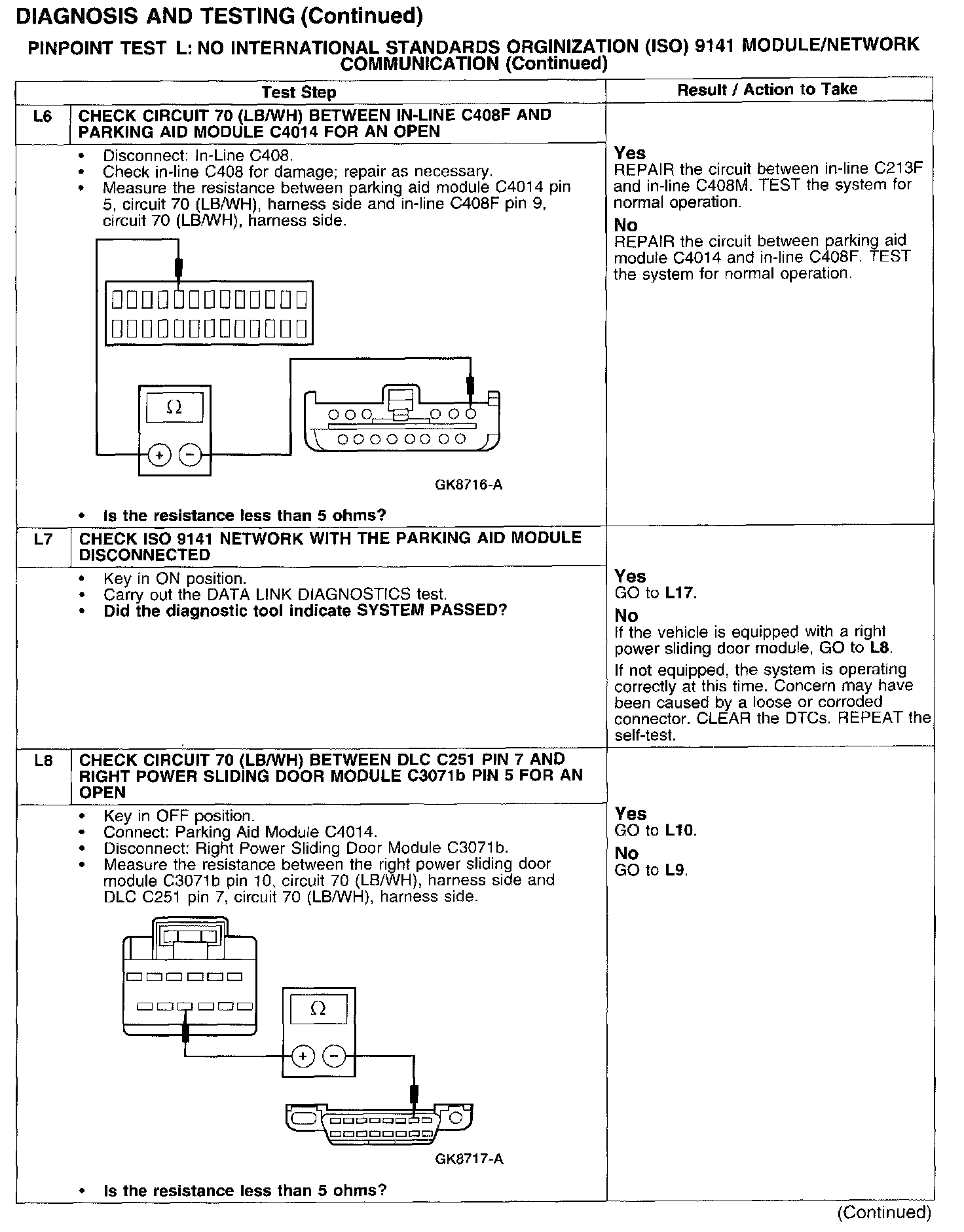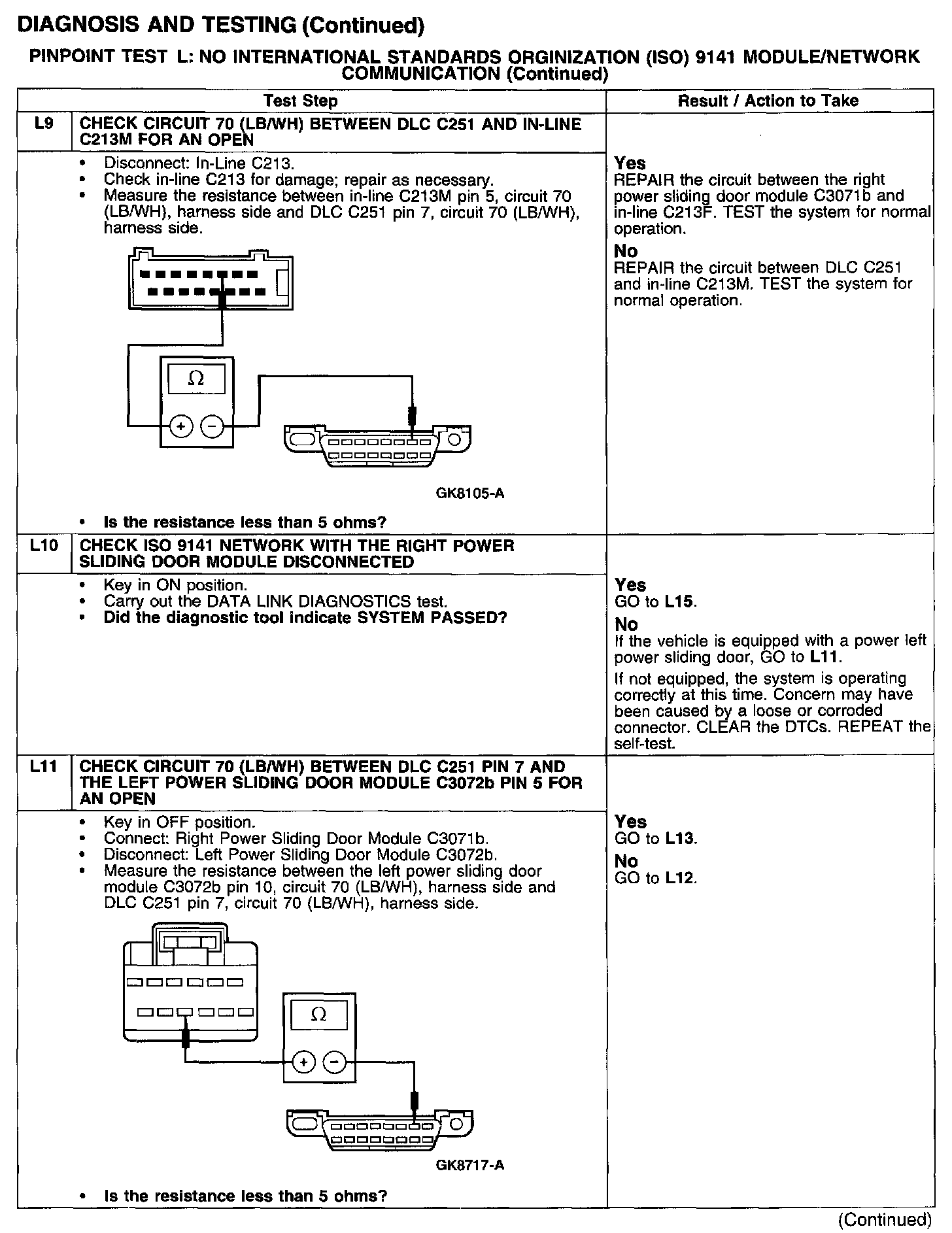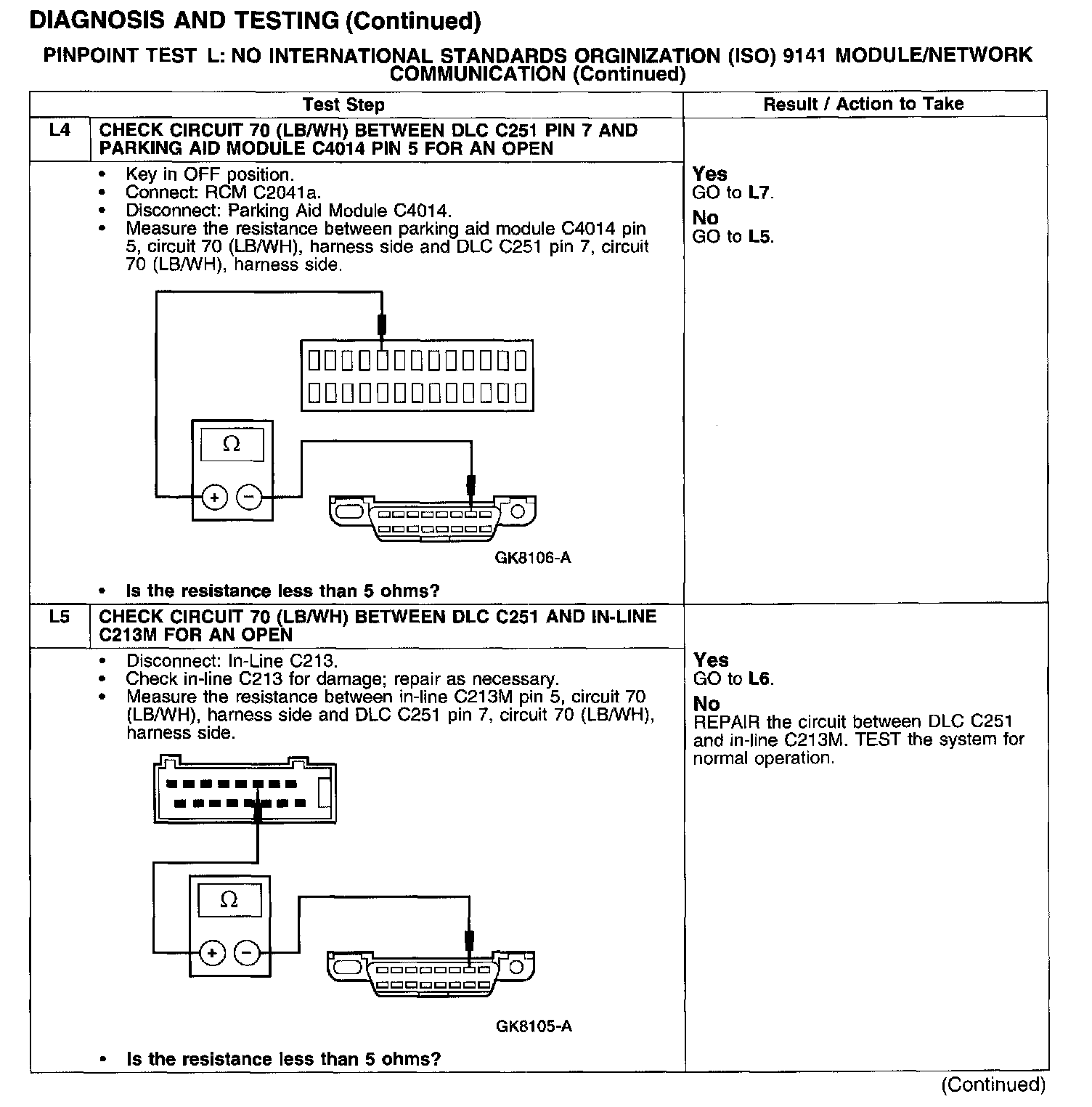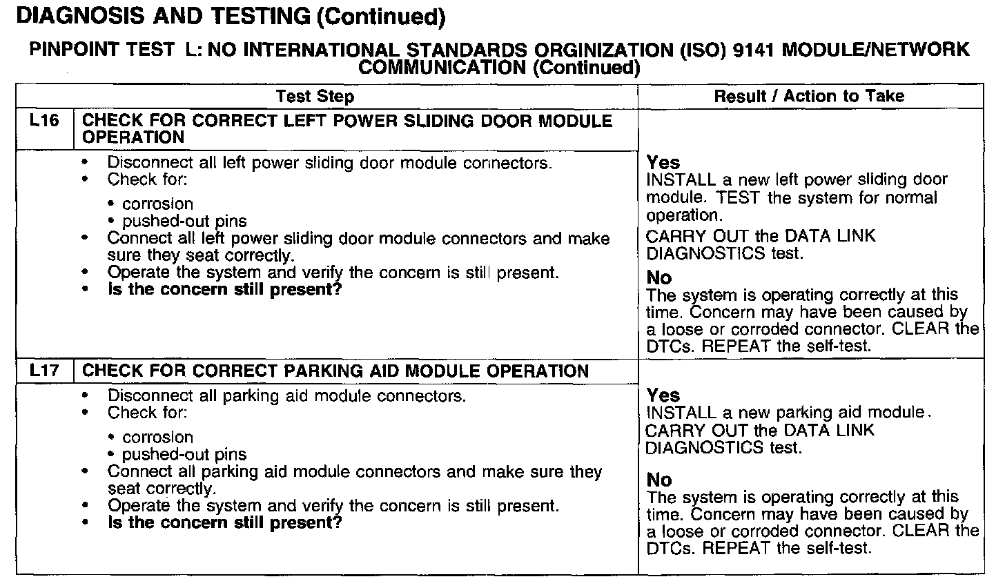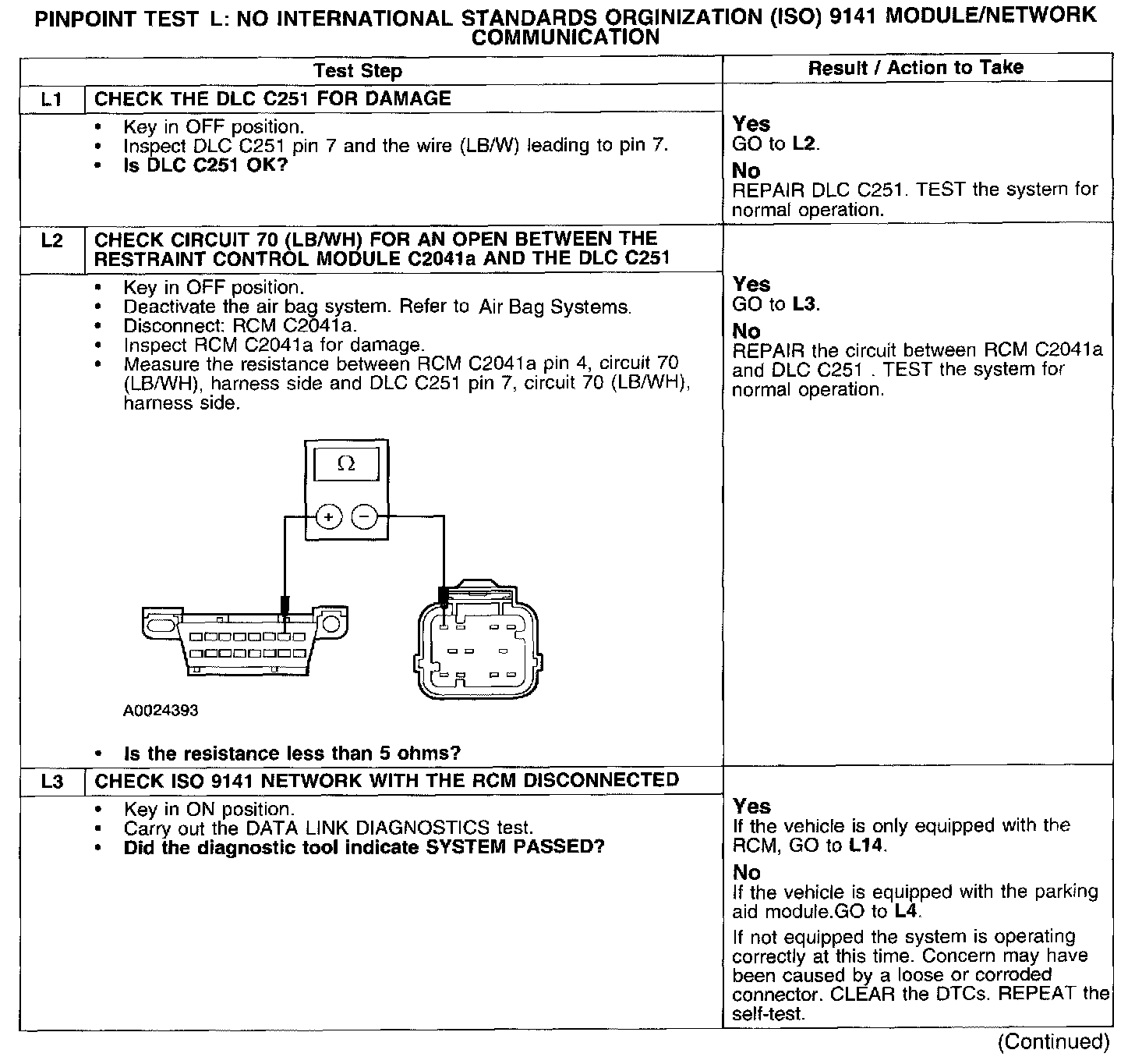 PINPOINT TEST L: NO INTERNATIONAL STANDARDS ORGANIZATION (ISO) 9141 MODULE/NETWORK COMMUNICATION