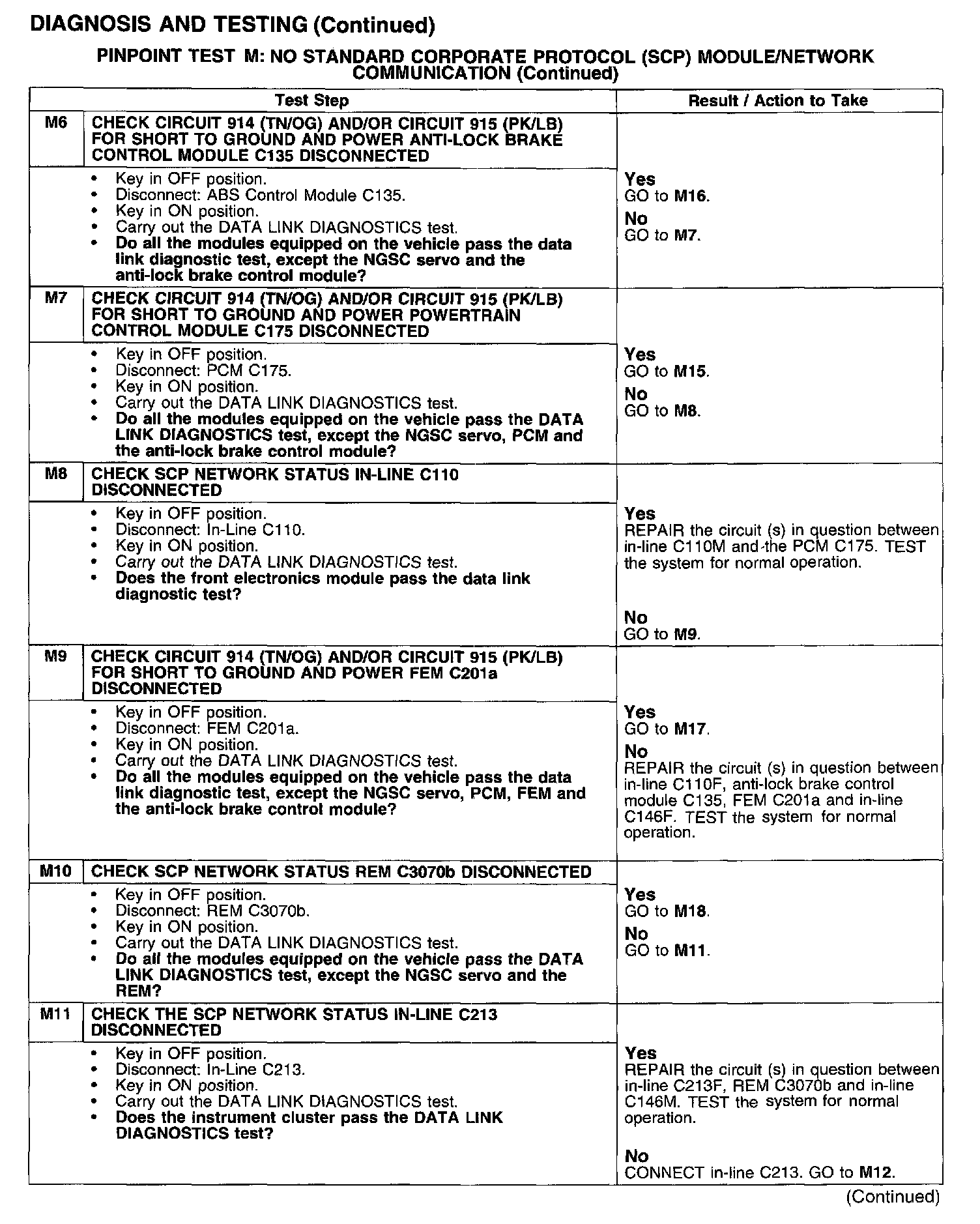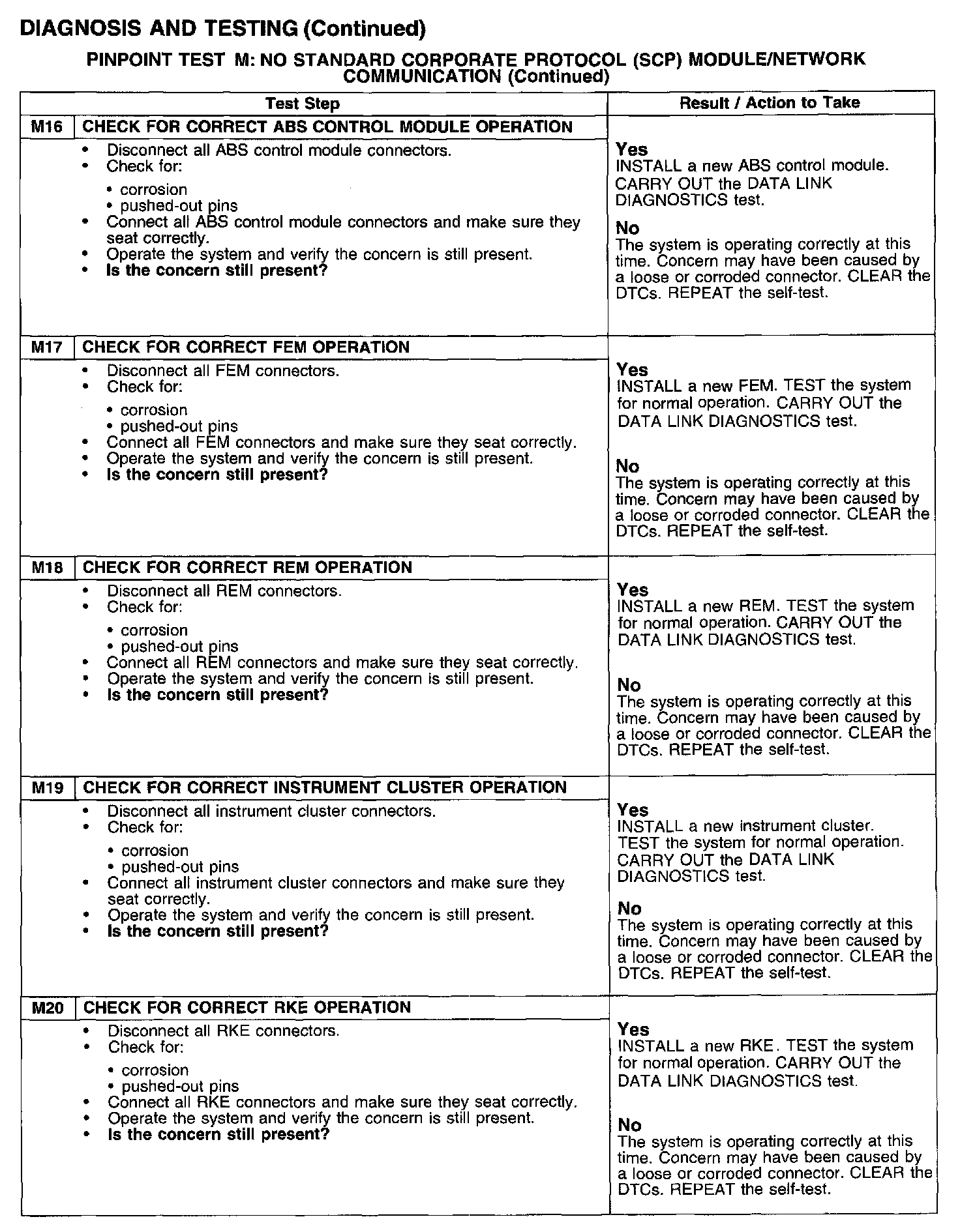 PINPOINT TEST M: NO STANDARD CORPORATE PROTOCOL (SCP) MODULE/NETWORK COMMUNICATION