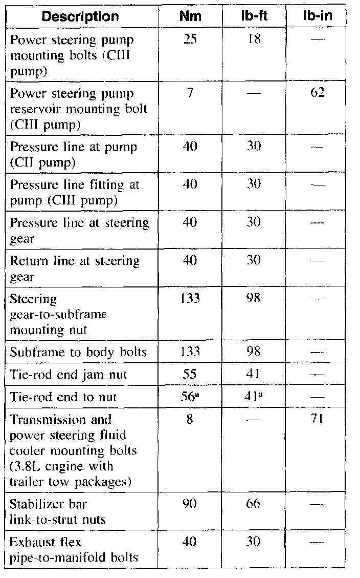 Torque Specifications