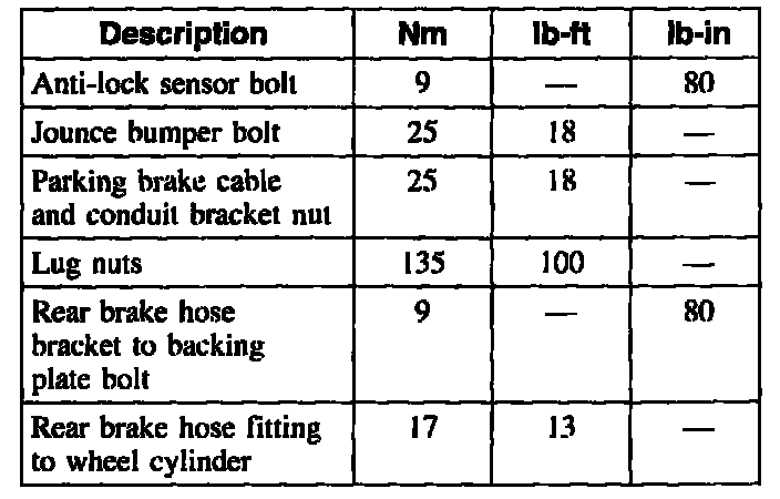 Torque Specifications