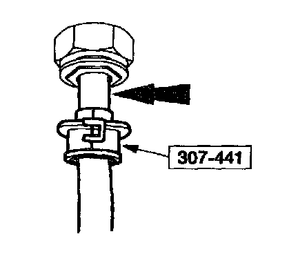 ^ Push the fluid cooler tube inward slightly, squeeze the retaining clip, and with a slight twisting motion, pull the fluid cooler tube out of the connector assembly.