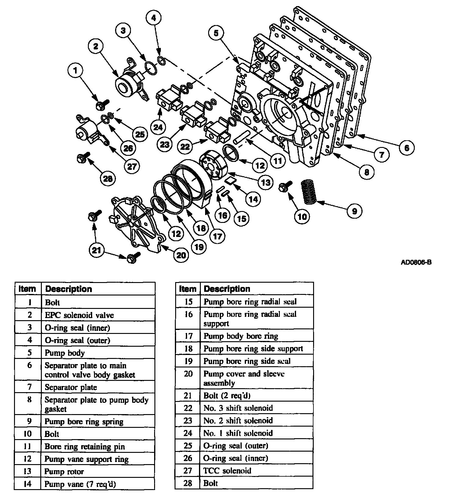 2. Install the 0-rings and install the EPC, TCC solenoids.