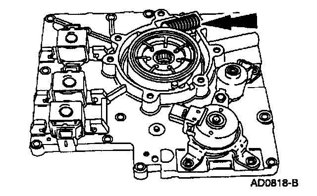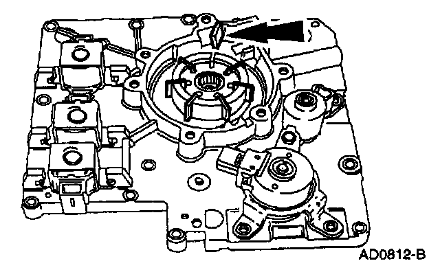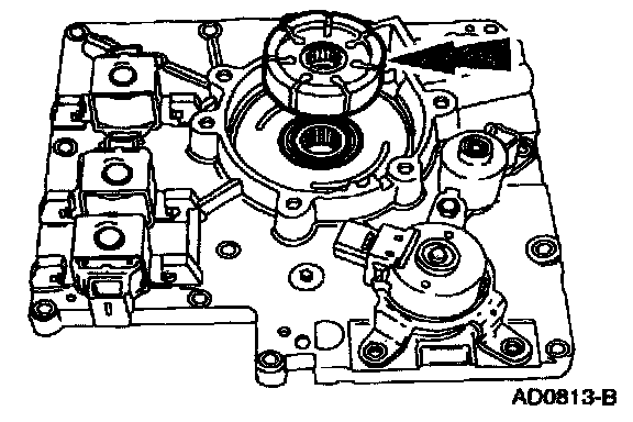 Remove the shift solenoids by pressing locking tab with a screwdriver and rotating them.