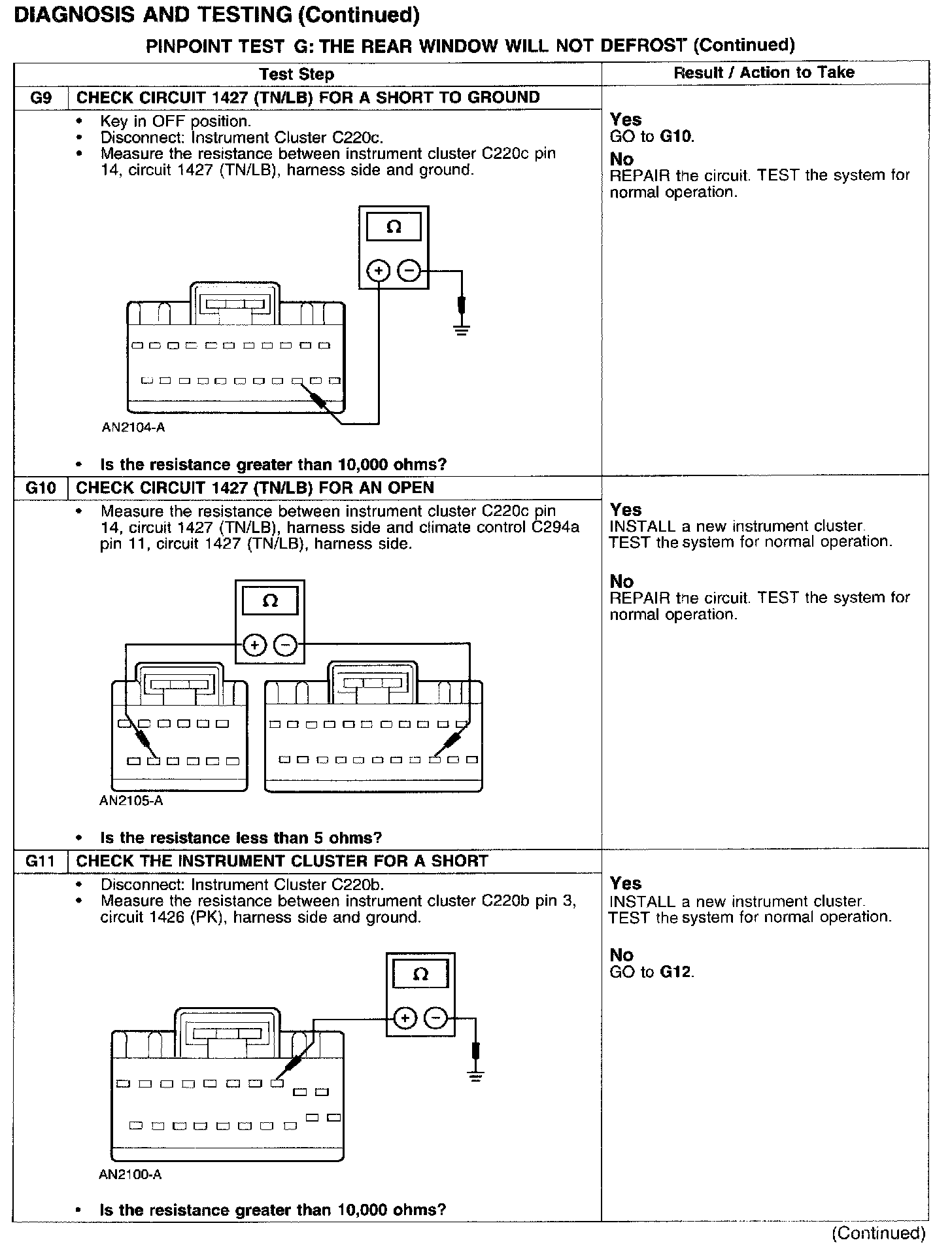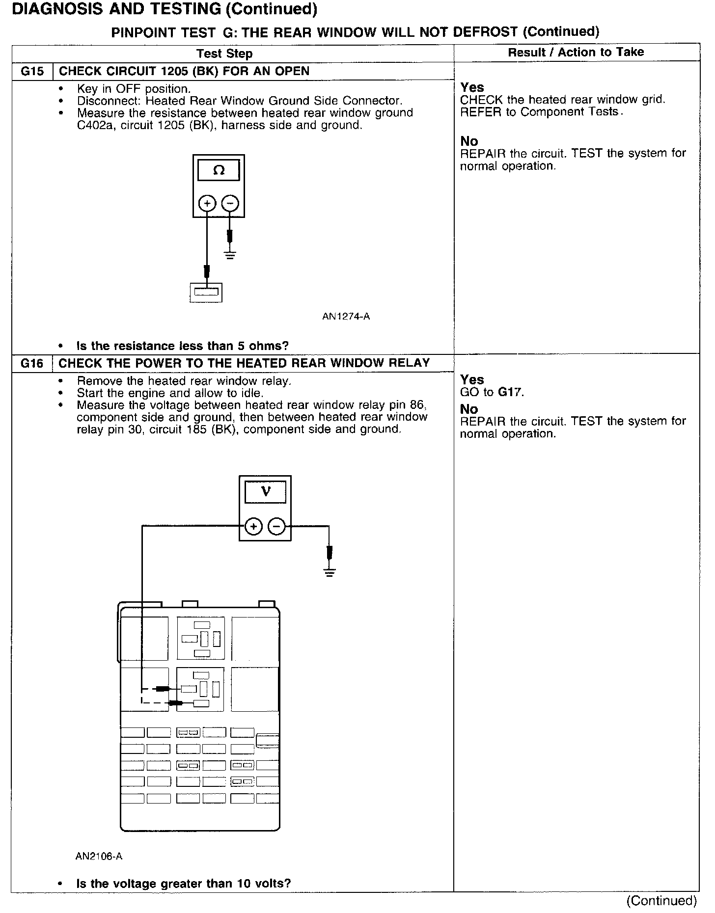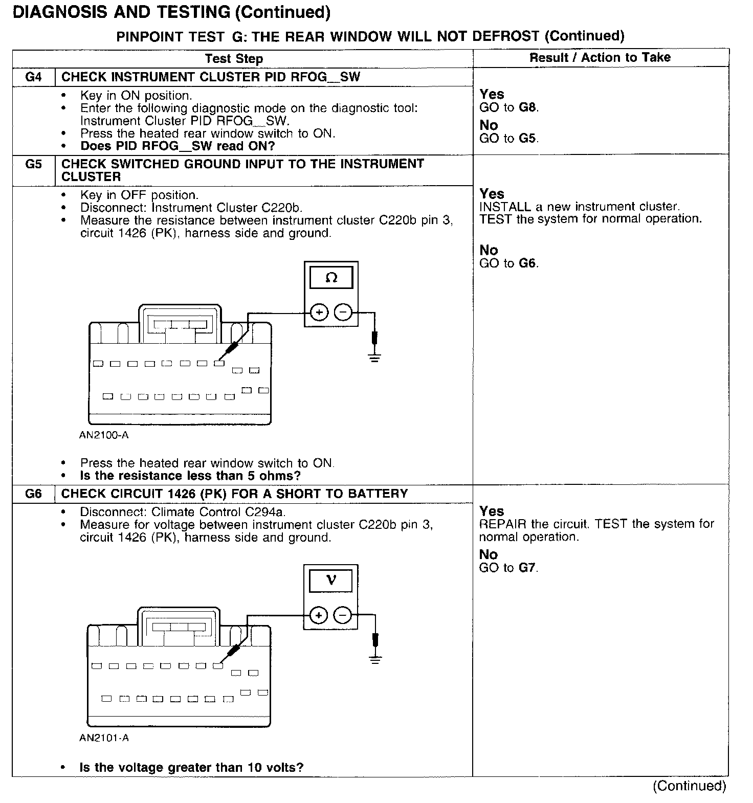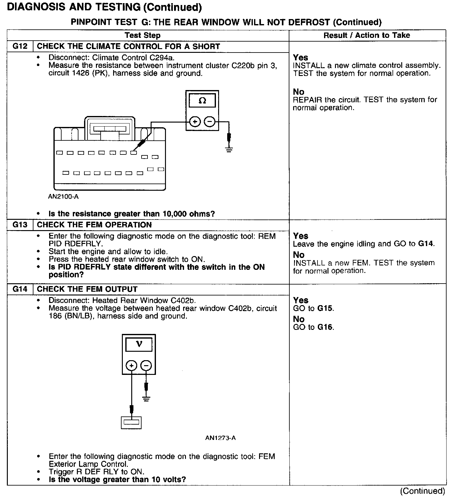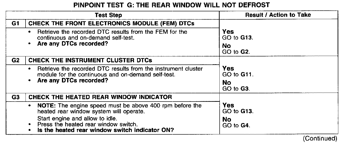 PINPOINT TEST G: THE REAR WINDOW WILL NOT DEFROST