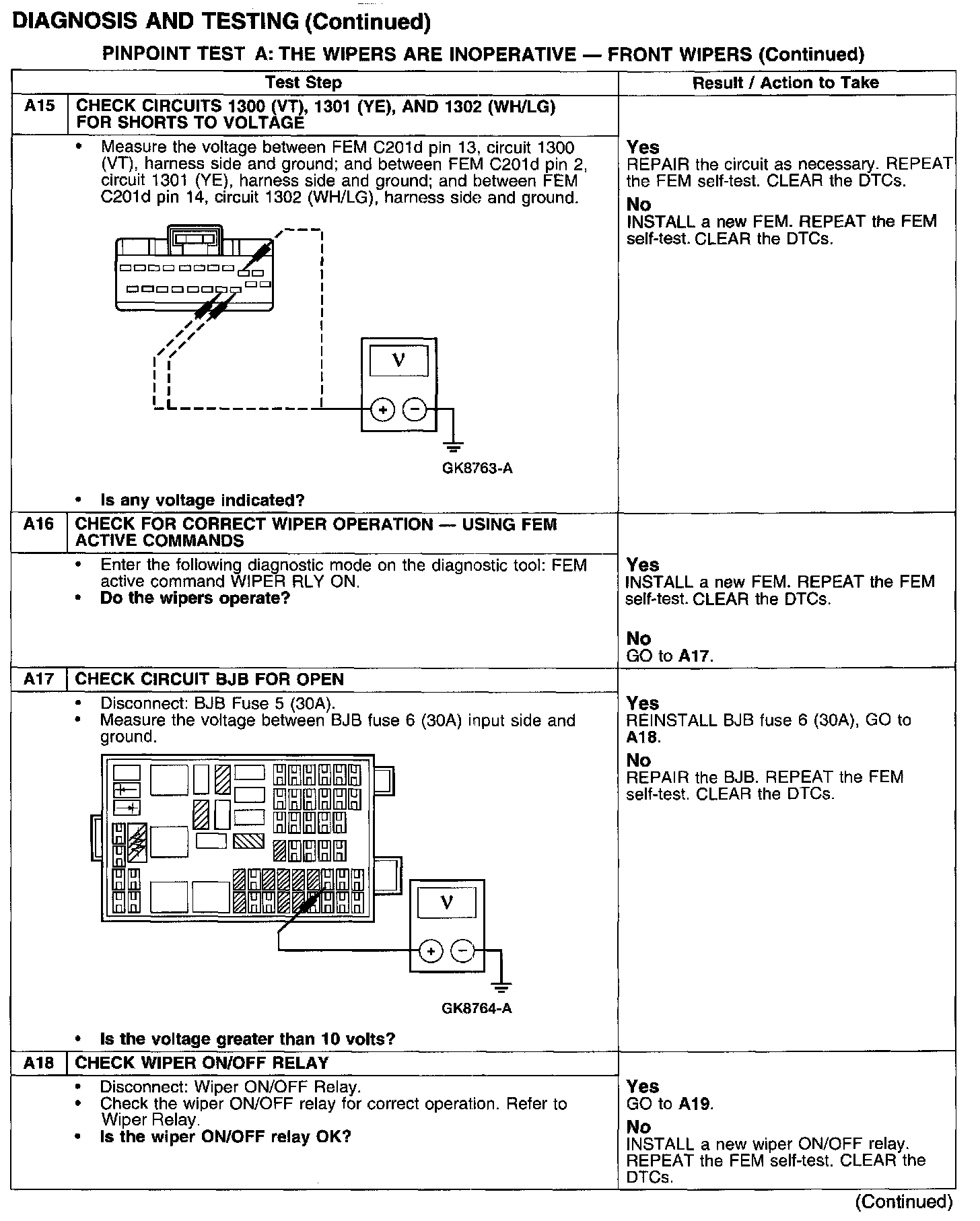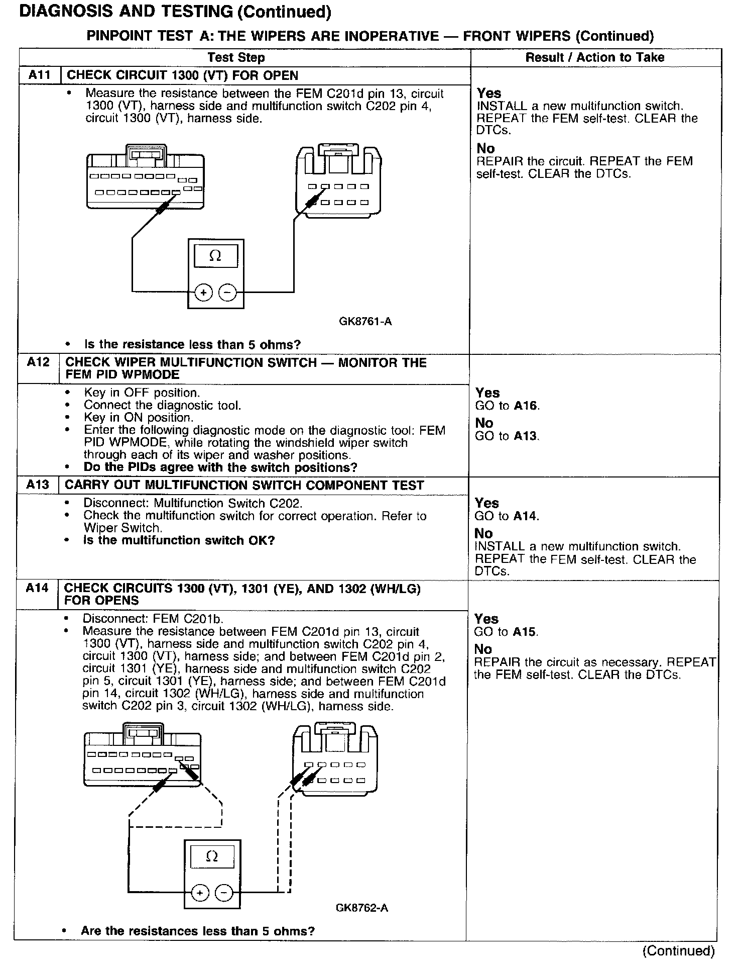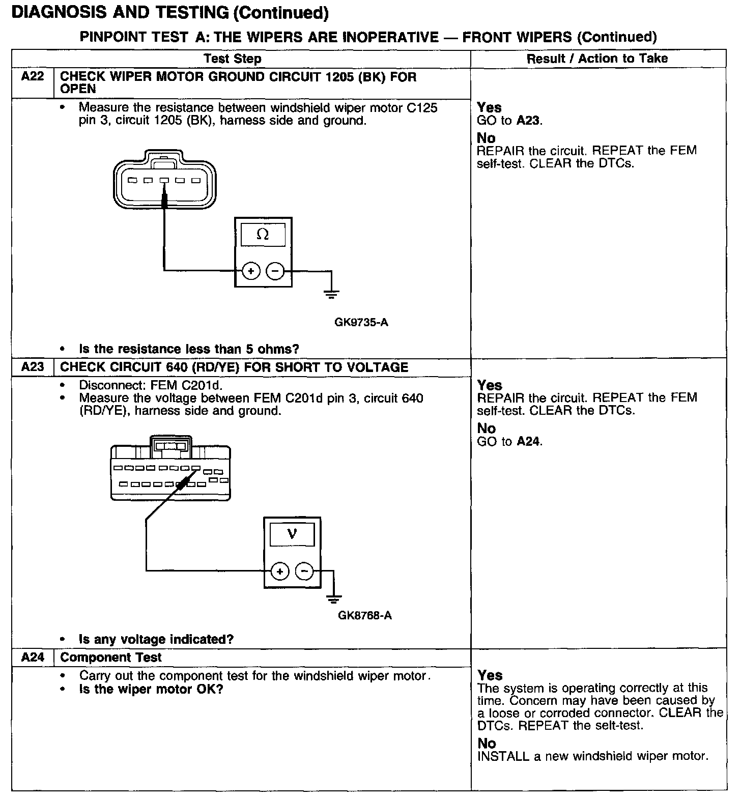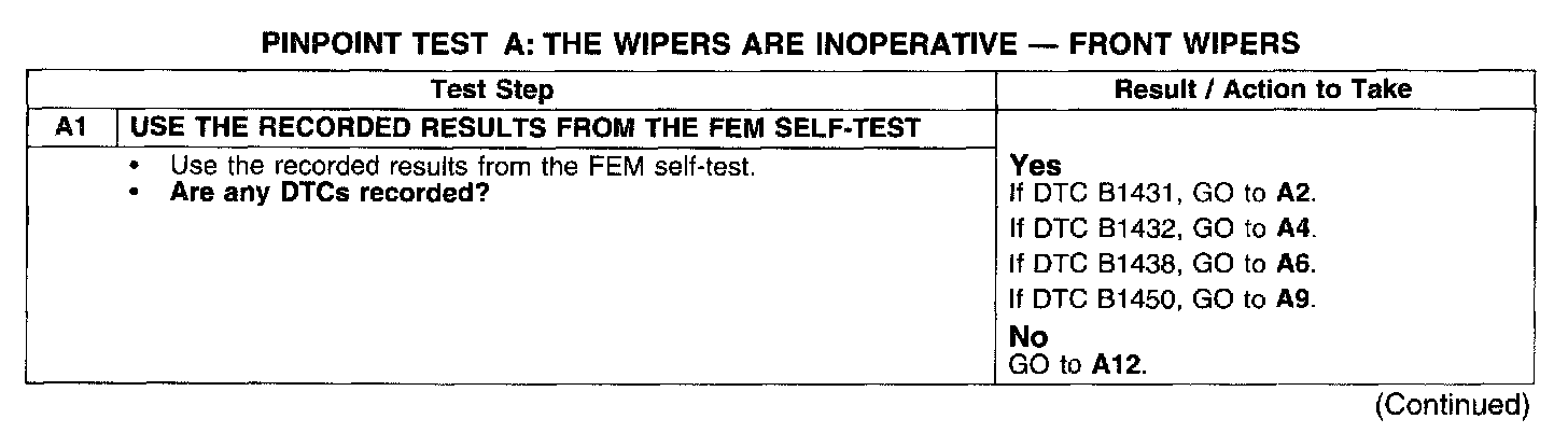 PINPOINT TEST A: THE WIPERS ARE INOPERATIVE - FRONT WIPERS