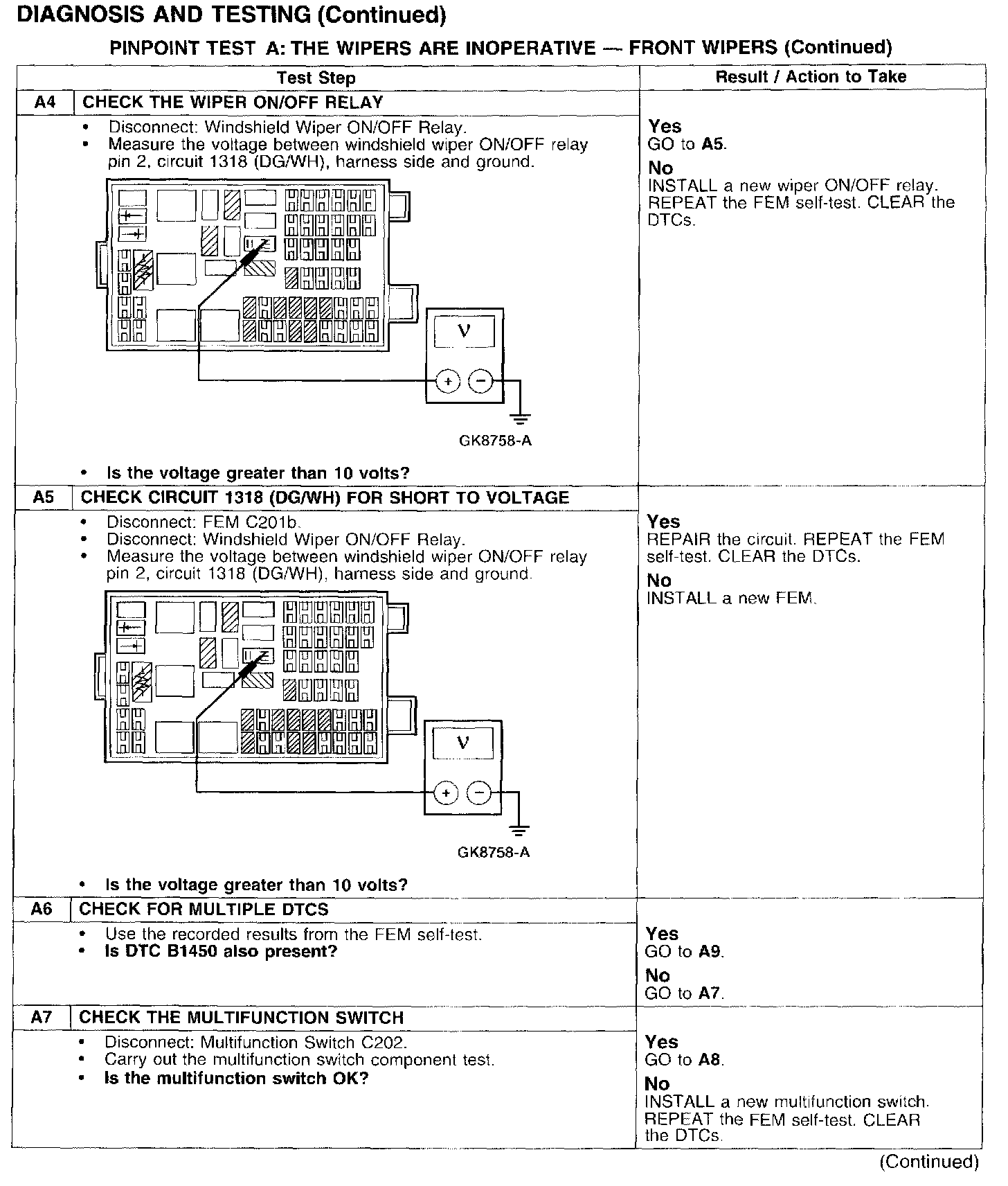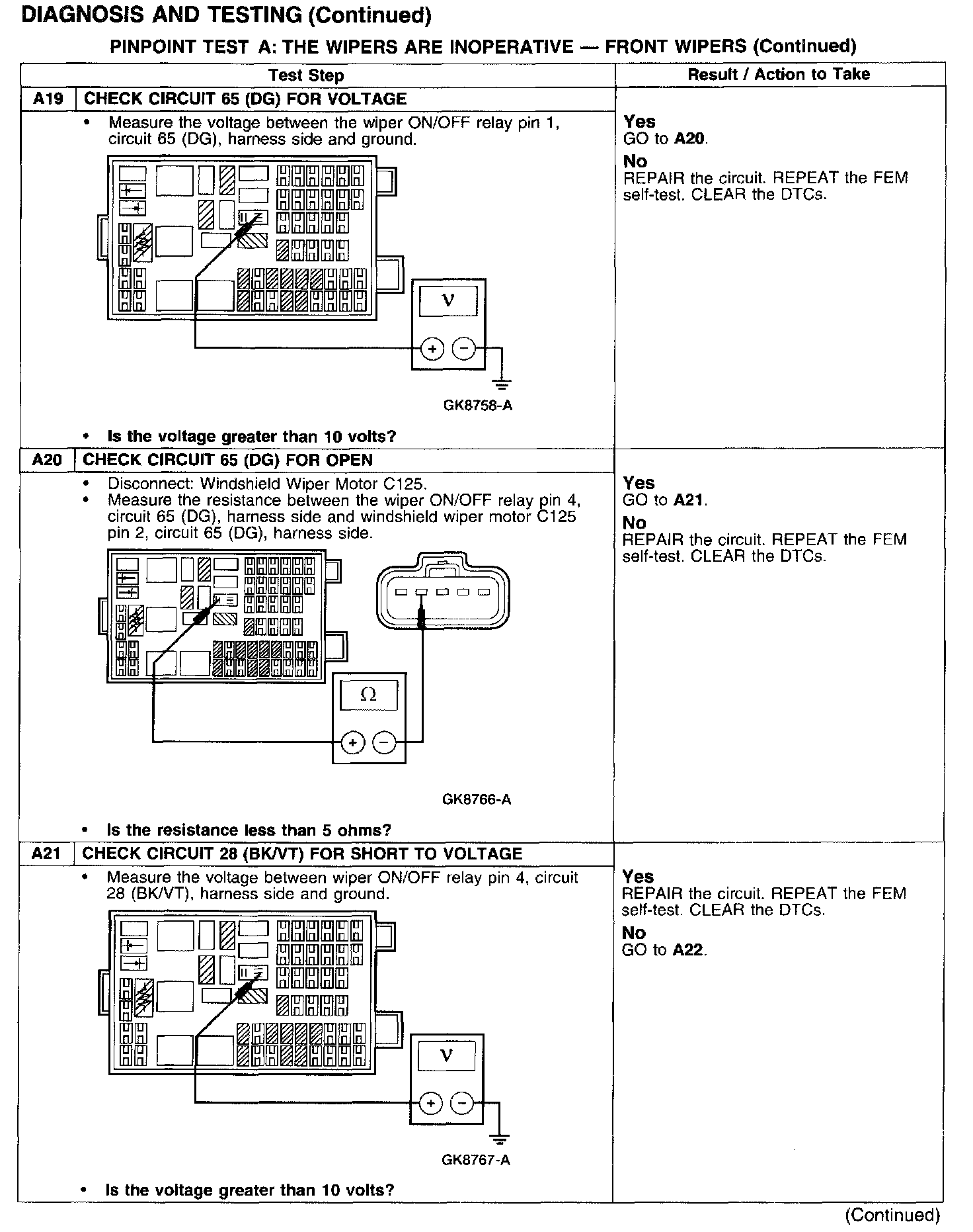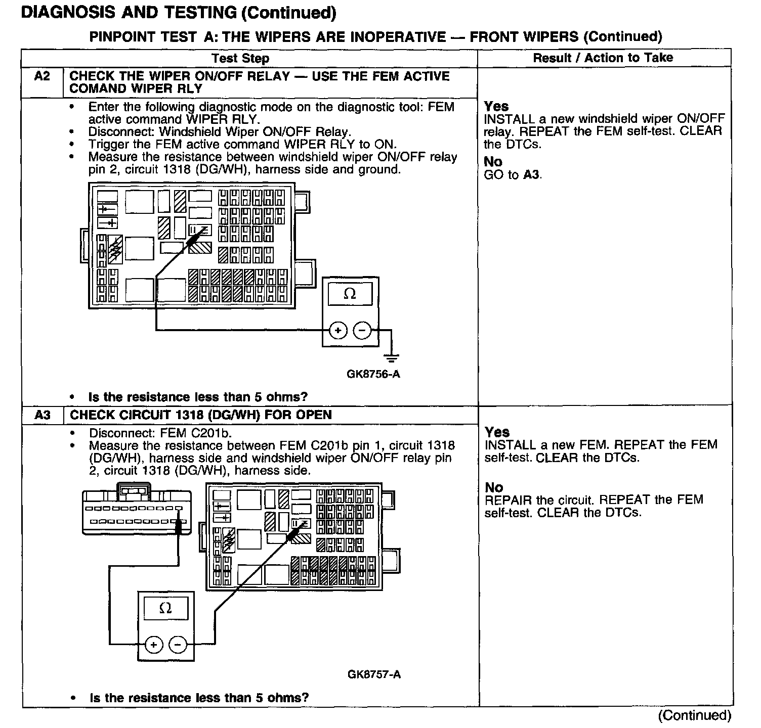 PINPOINT TEST A: THE WIPERS ARE INOPERATIVE - FRONT WIPERS