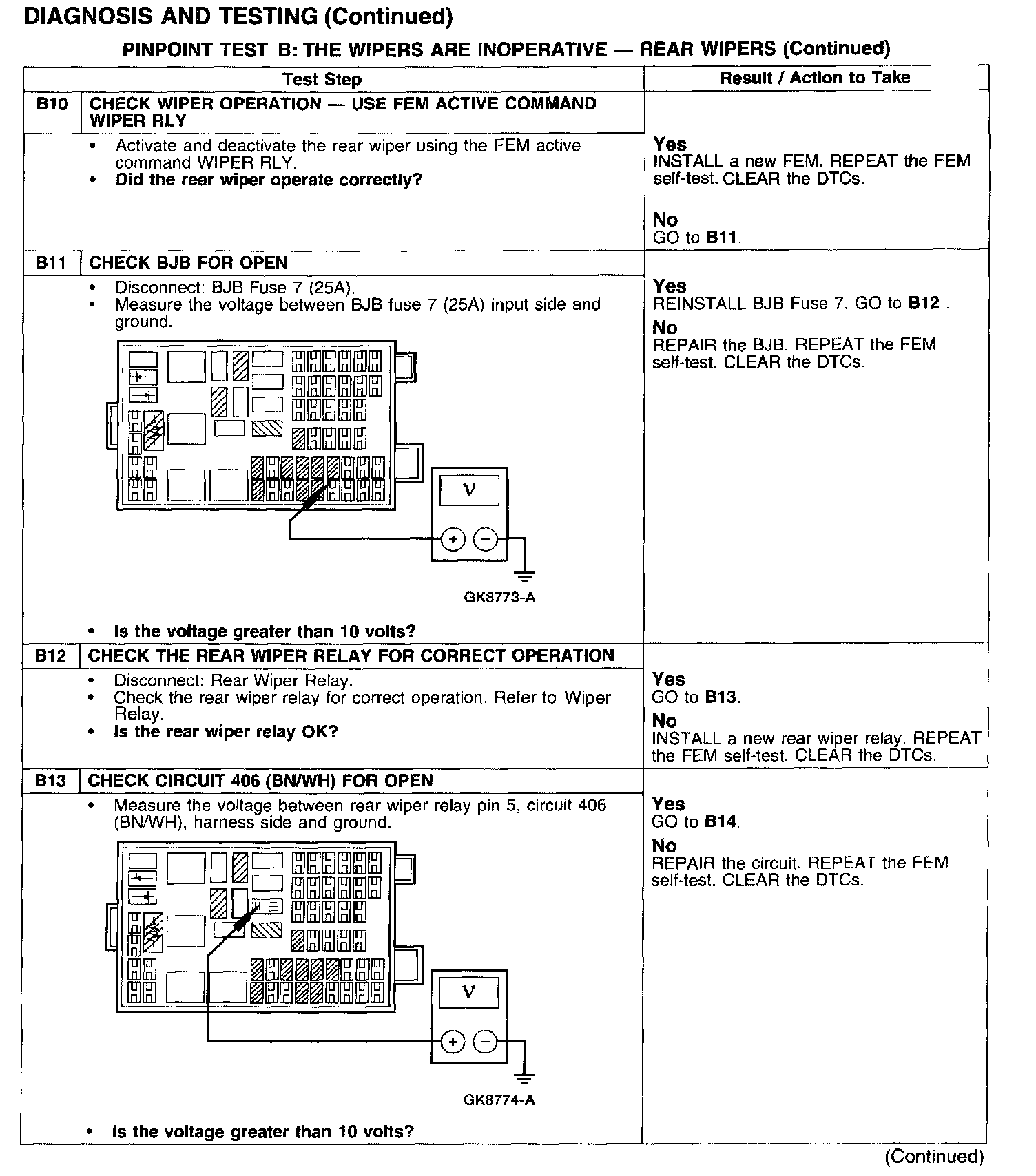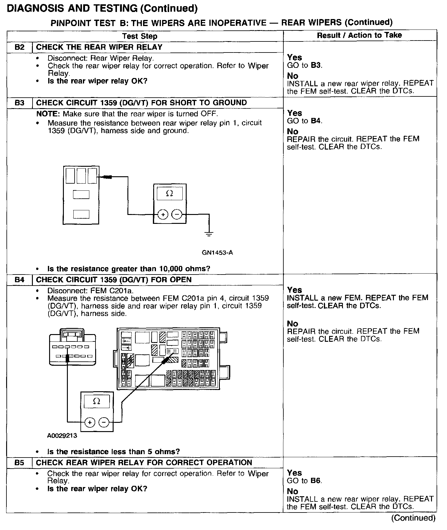 PINPOINT TEST B: THE WIPERS ARE INOPERATIVE - REAR WIPERS