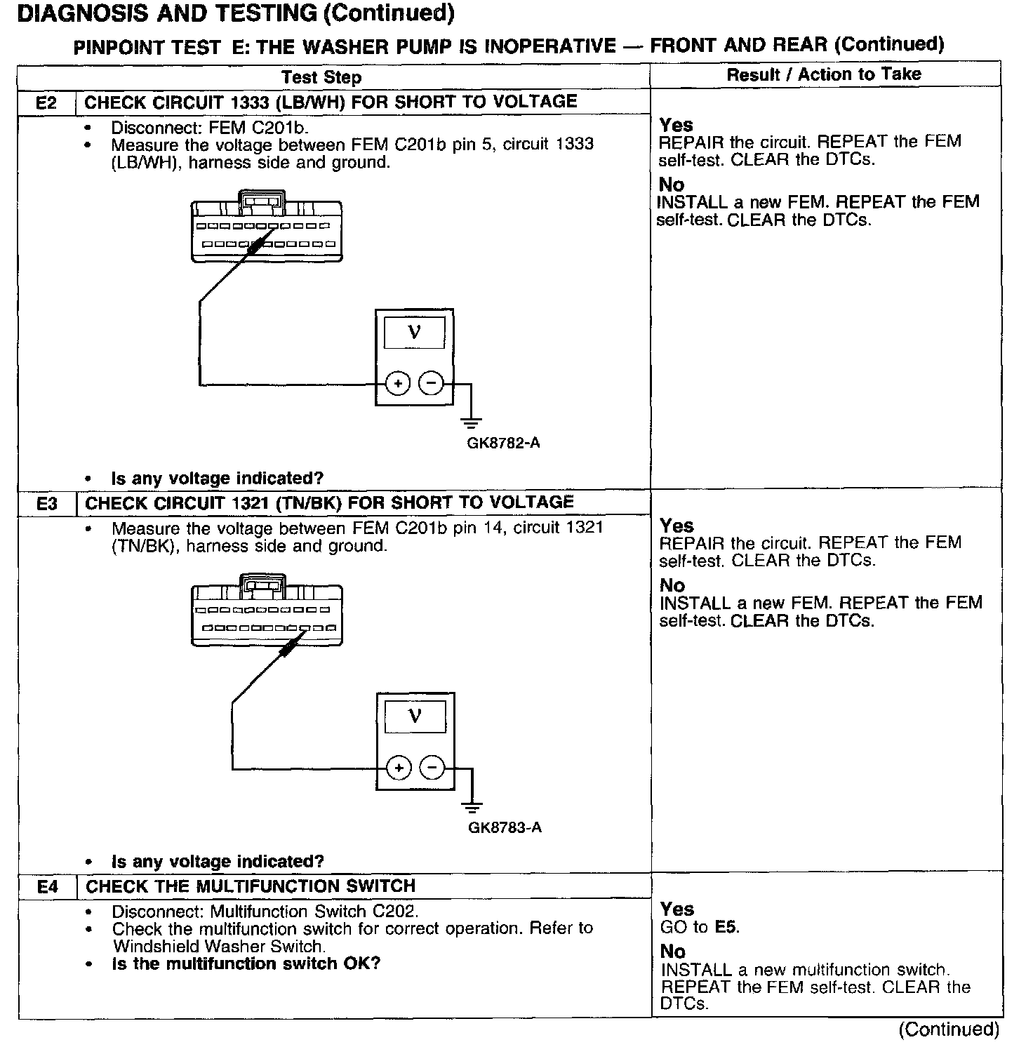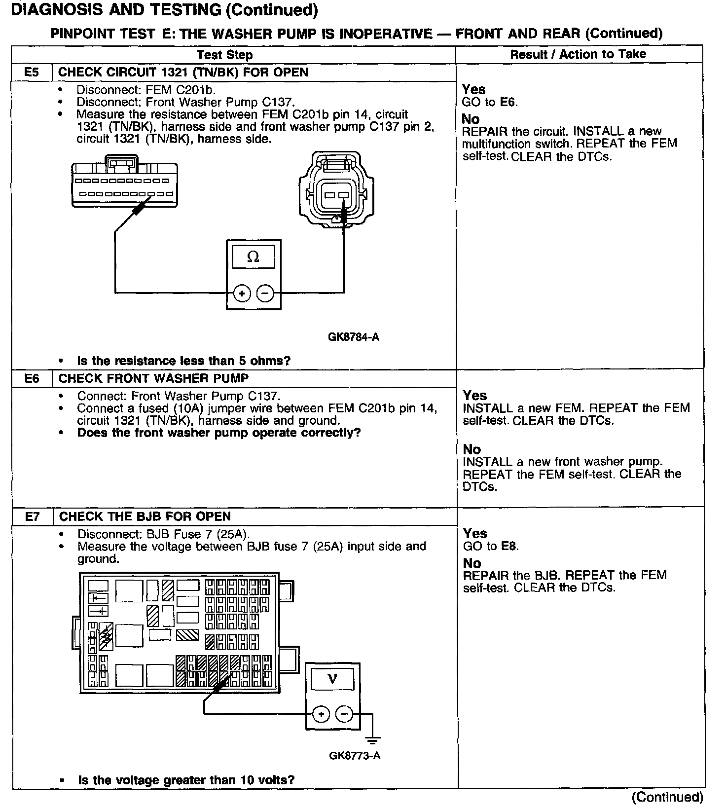 PINPOINT TEST E: THE WASHER PUMP IS INOPERATIVE - FRONT AND REAR