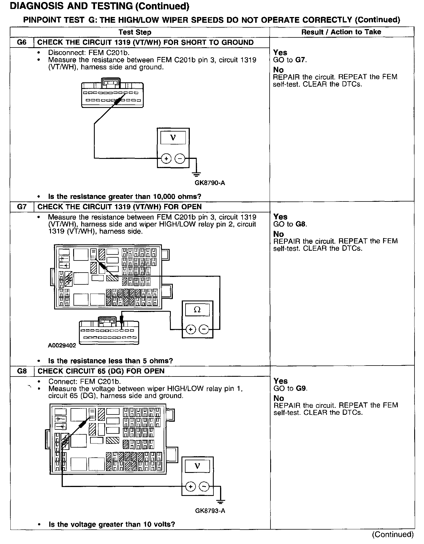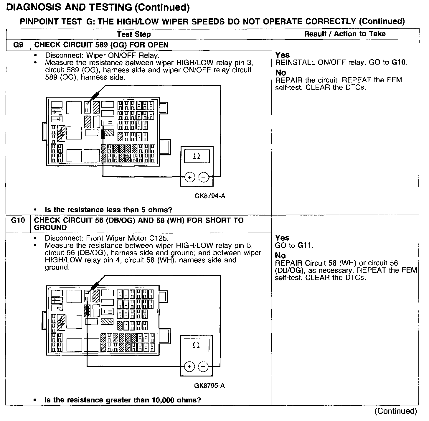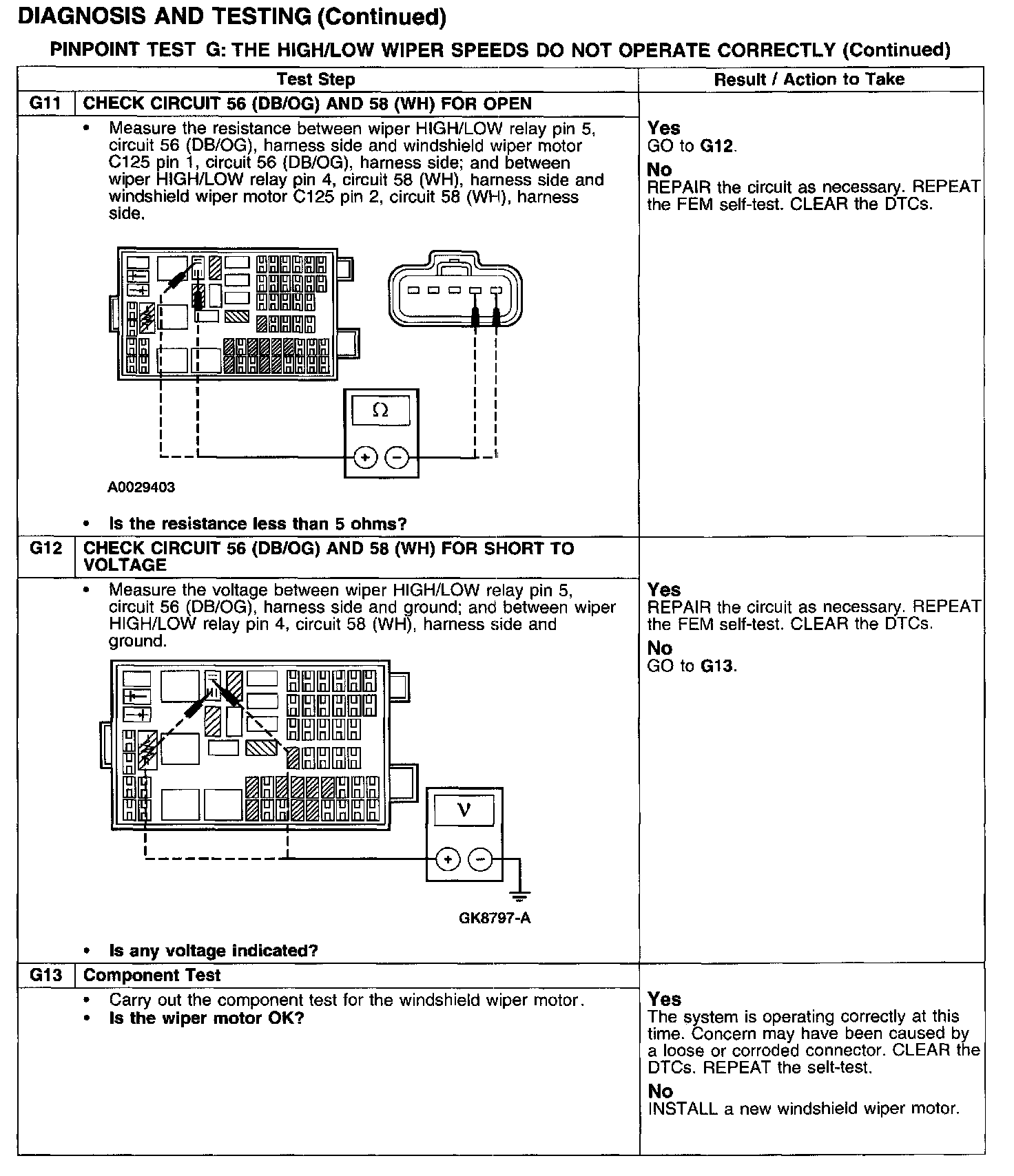 PINPOINT TEST G: THE HIGH/LOW WIPER SPEEDS DO NOT OPERATE CORRECTLY