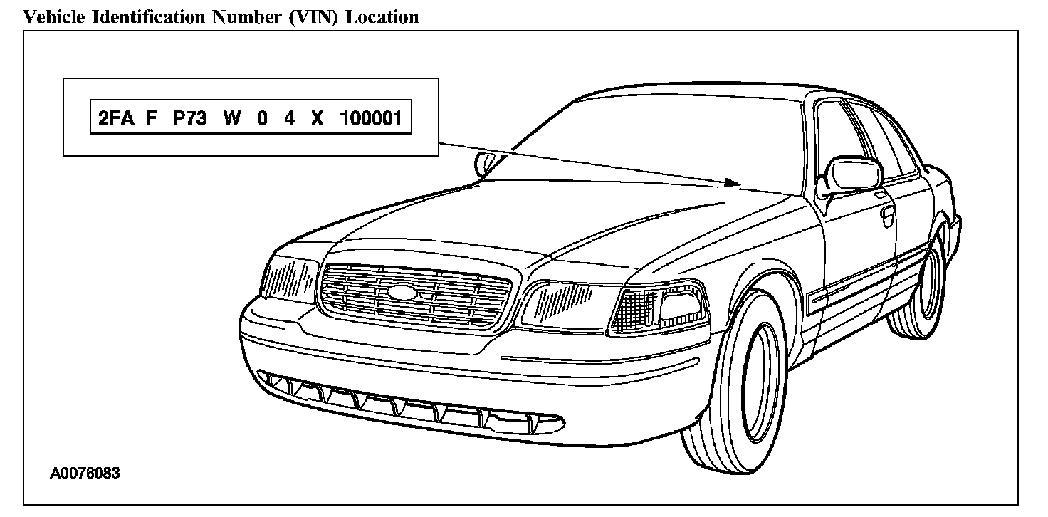 The vehicle identification number (VIN) is a seventeen-digit combination of letters and numbers. The VIN is stamped on a metal tab riveted to the instrument panel, top upper left of the dash. The VIN number is also found on the vehicle certification (VC) label.