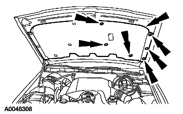 If equipped with an engine compartment lamp, remove the pin-type retainers and position the hood insulation aside.