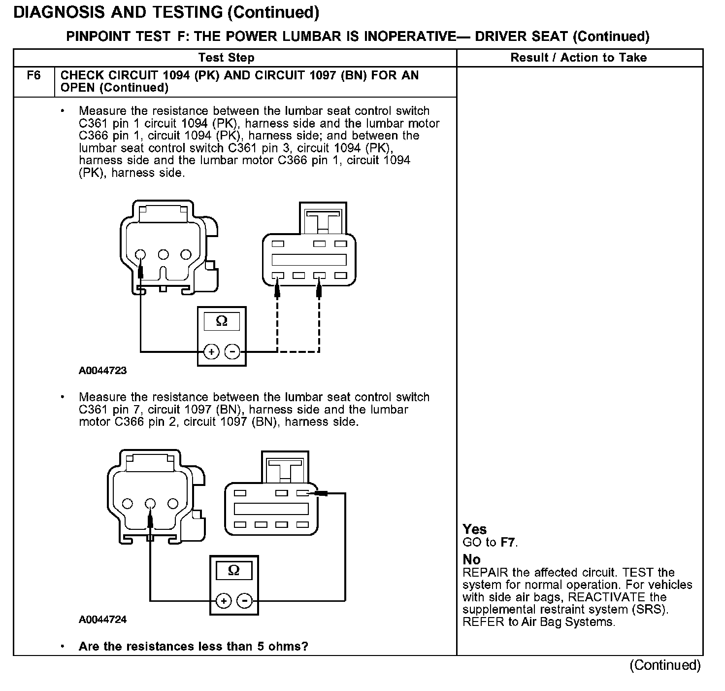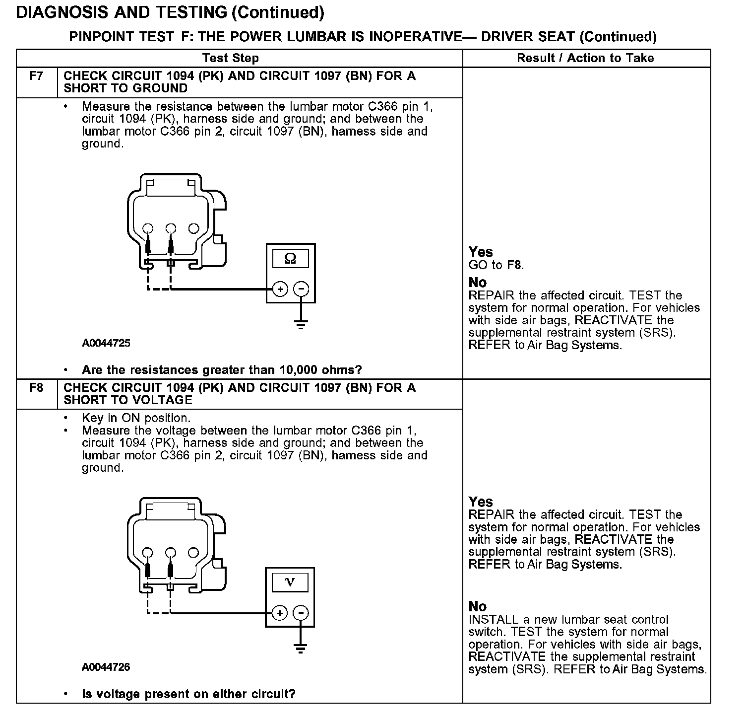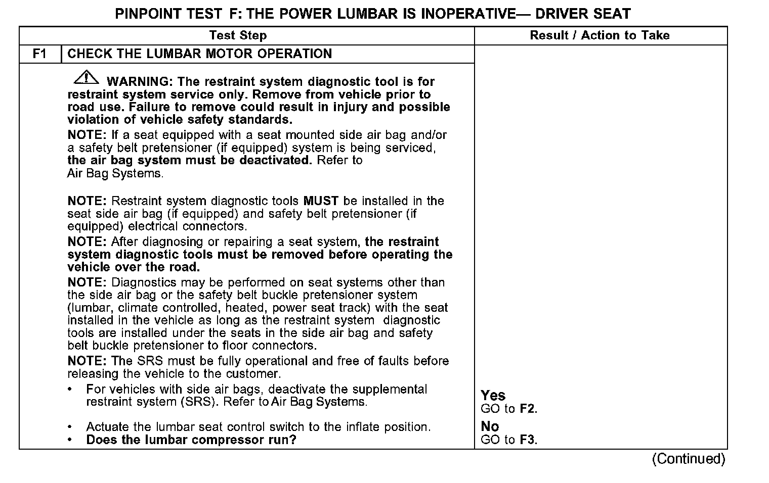 PINPOINT TEST F: THE POWER LUMBAR IS INOPERATIVE - DRIVER SEAT