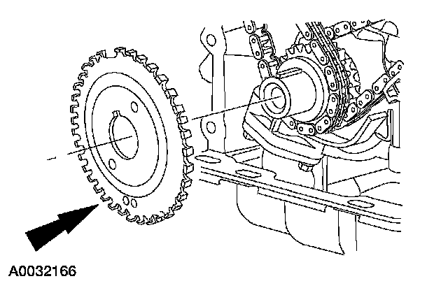 ^ Remove the RH timing chain from the crankshaft sprocket.