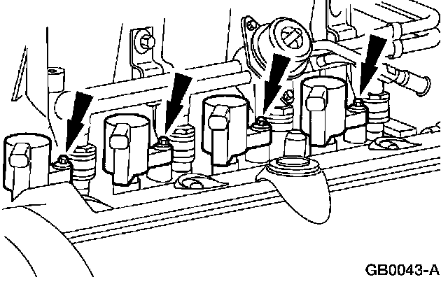 5. NOTE: Use compressed air to remove any foreign material from the spark plug wells before removing the spark plugs.