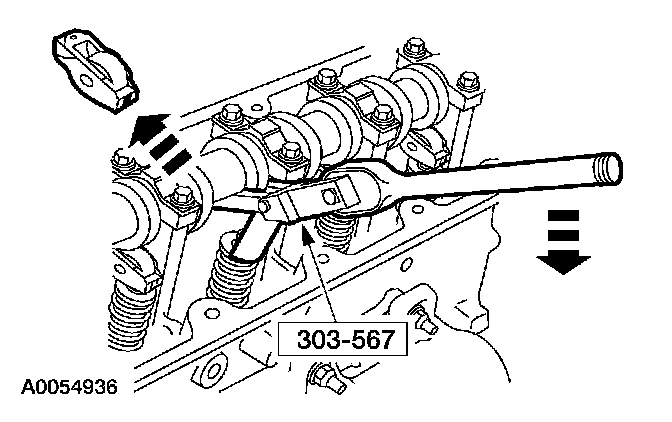 Use the special tool to compress the valve spring and remove the camshaft roller followers.