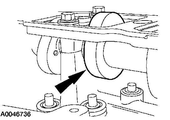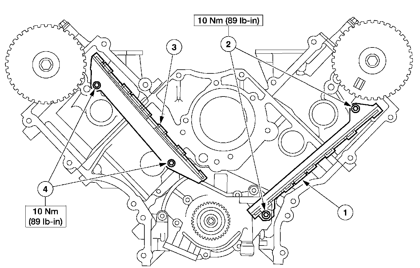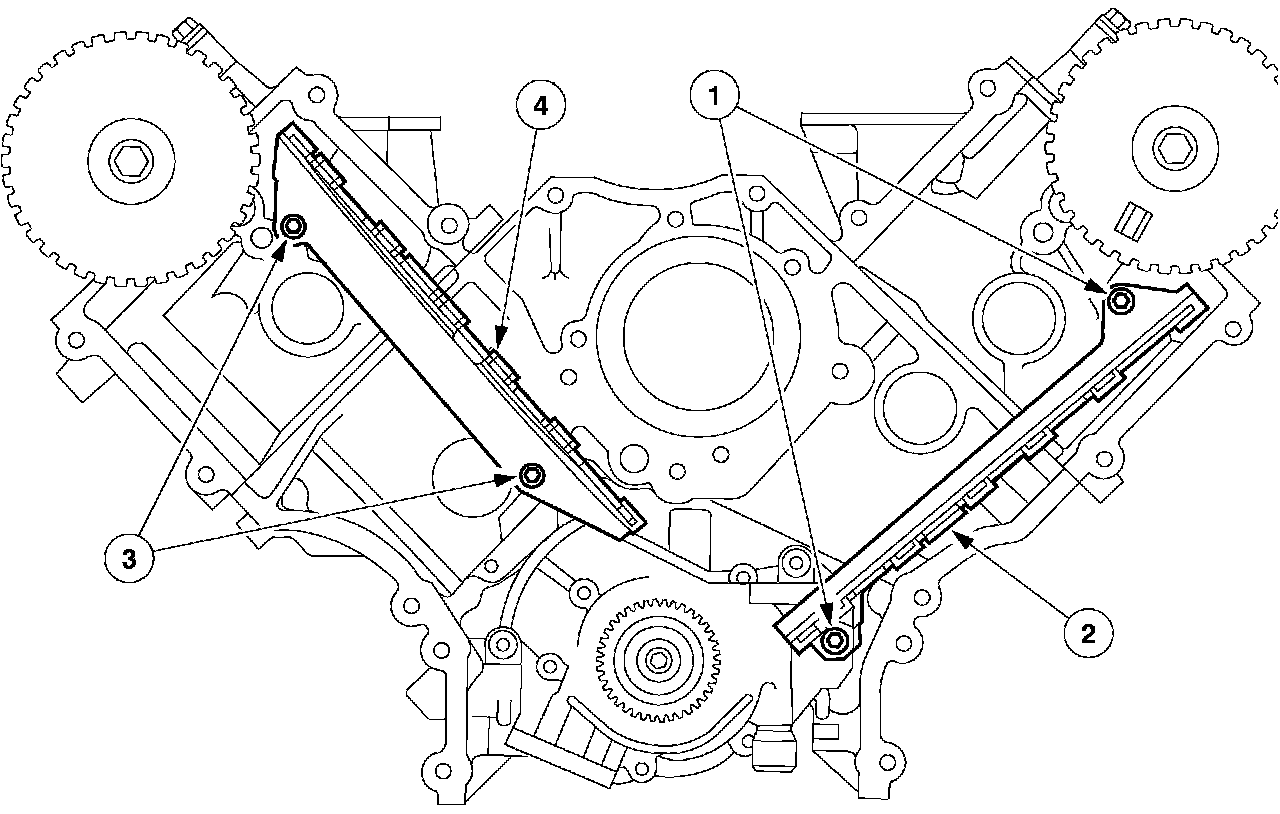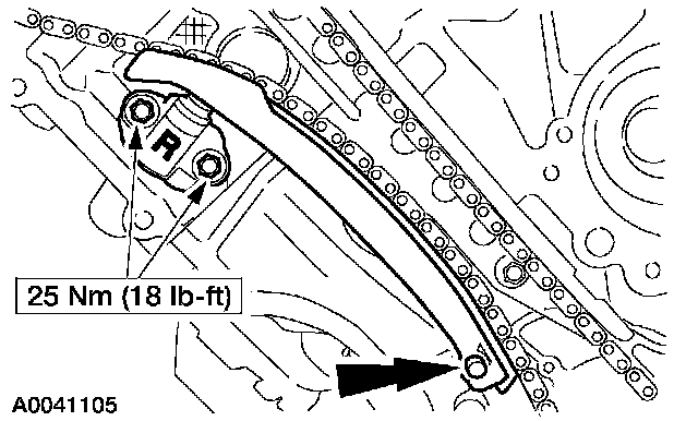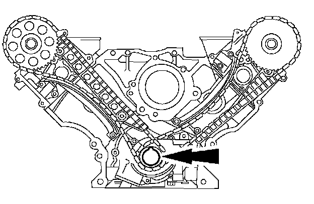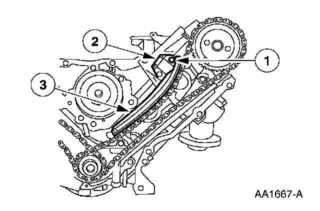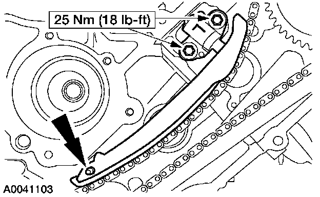 15. NOTE: The LH timing chain tensioner arm has a bump near the dowel hole for identification.