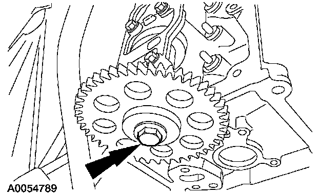 8. Install the camshaft sprockets and new bolts. Tighten the bolts in two stages.