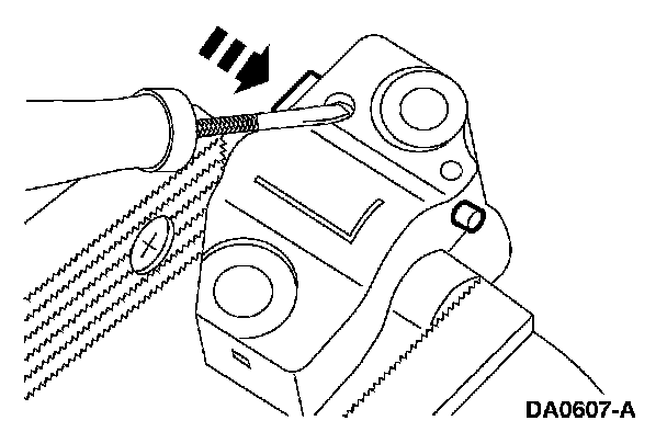 2. Using a small screwdriver or pick, push back and hold the ratchet mechanism.