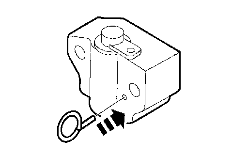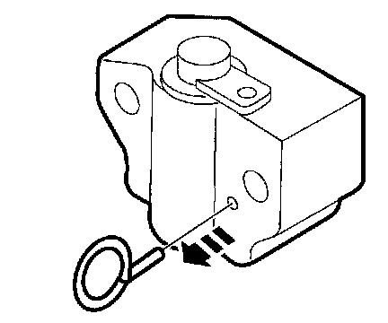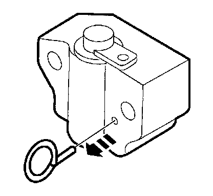 4. Install a paper clip into the hole of each tensioner housing to hold the ratchet assembly and plunger in during installation.