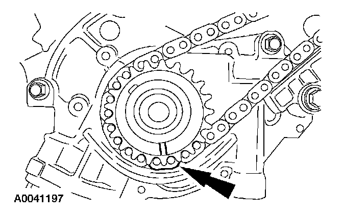 14. Install the LH timing chain on the sprocket, aligning the copper (marked) link with the timing marks on the sprocket.
