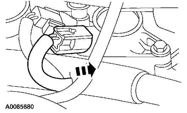 16. Remove the retaining clip from the LH timing chain tensioner.
