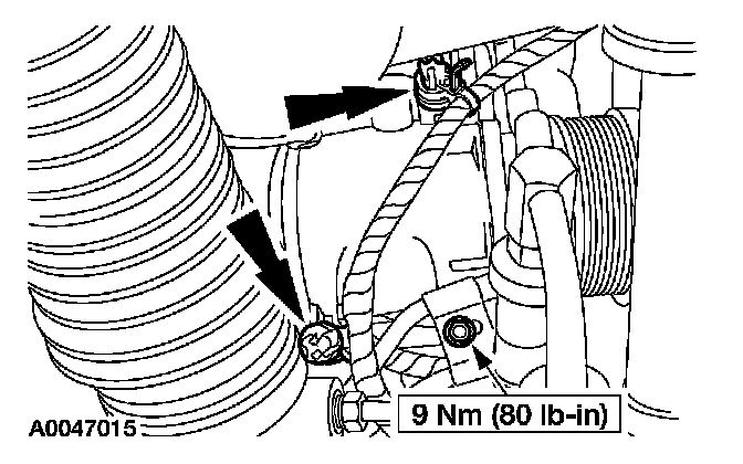 NOTE: Installation of a new suction accumulator is not required when repairing the air conditioning system, except when there is physical evidence of contamination from a failed A/C compressor or damage to the suction accumulator.