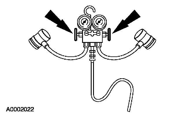1. Turn both valves on the R-134a Manifold Gauge Set clockwise to close the low- and high-pressure hoses to the center manifold and center hose.