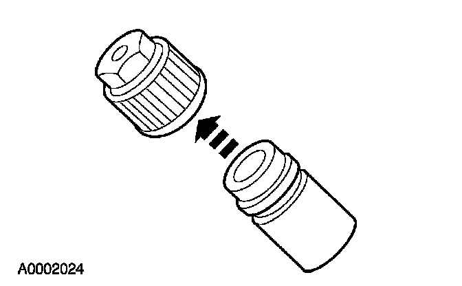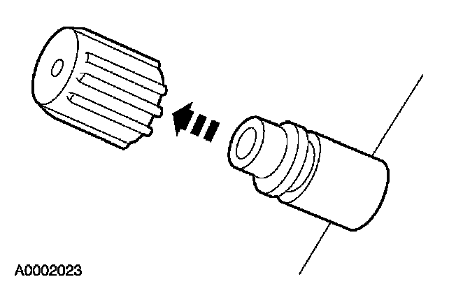 2. Remove the A/C charging valve cap from the low-pressure service gauge port valve.
