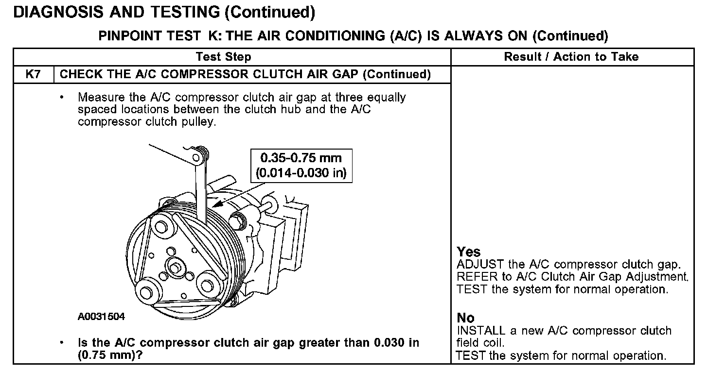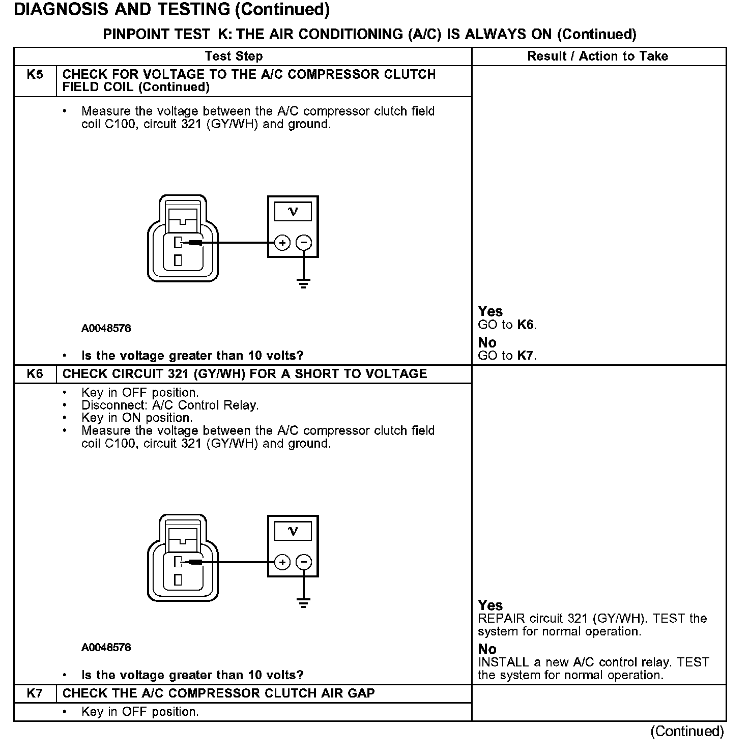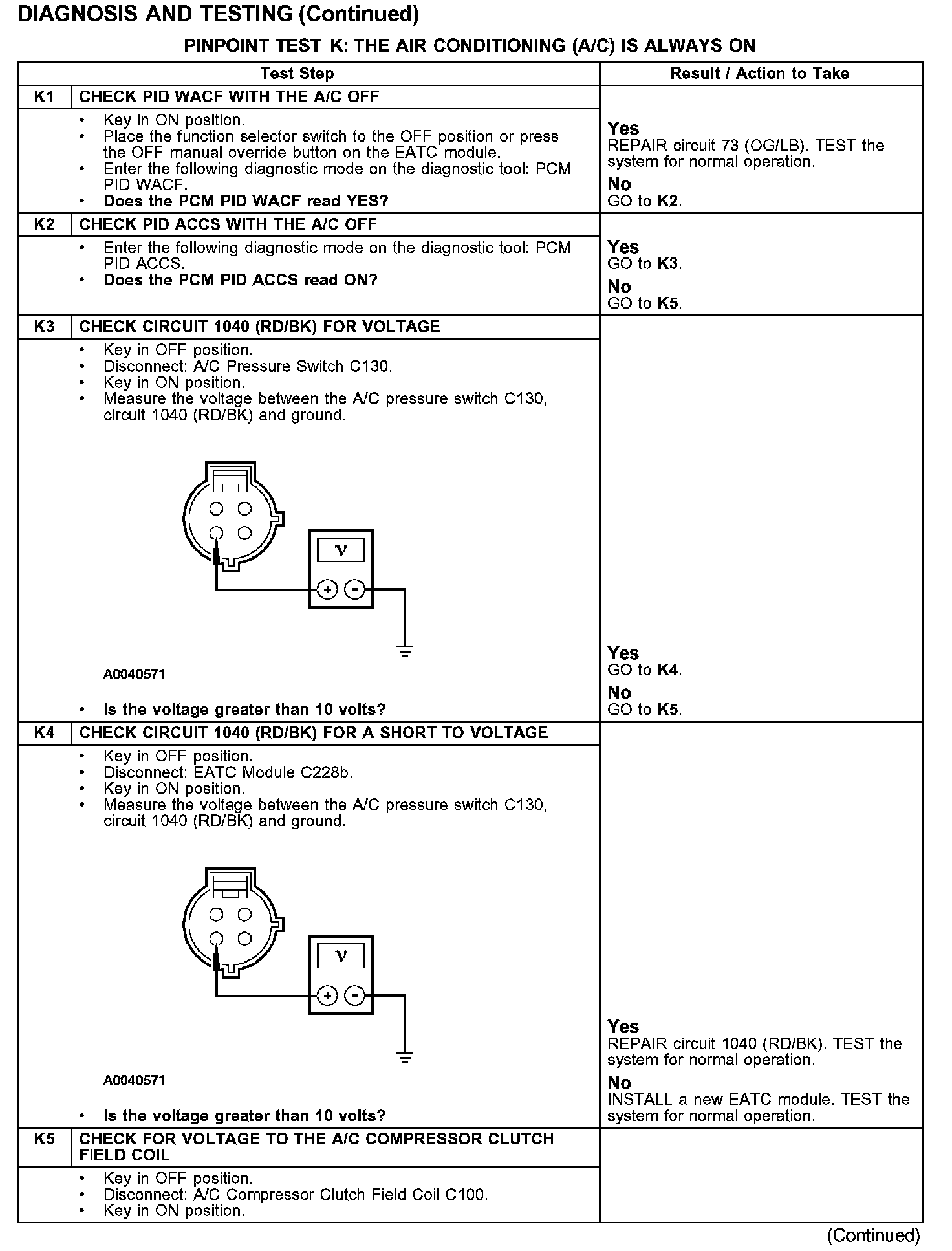 PINPOINT TEST K: THE AIR CONDITIONING (A/C) IS ALWAYS ON