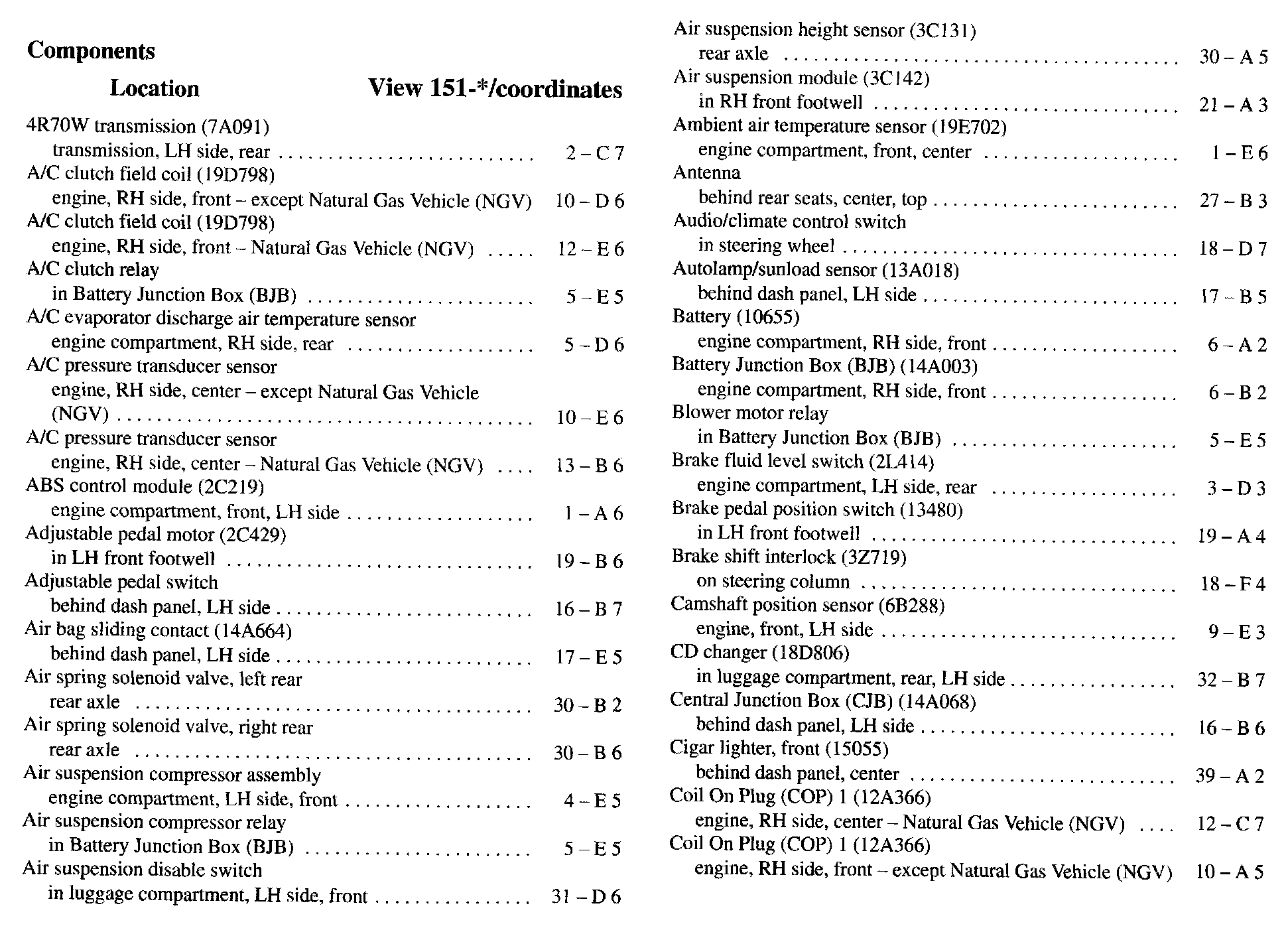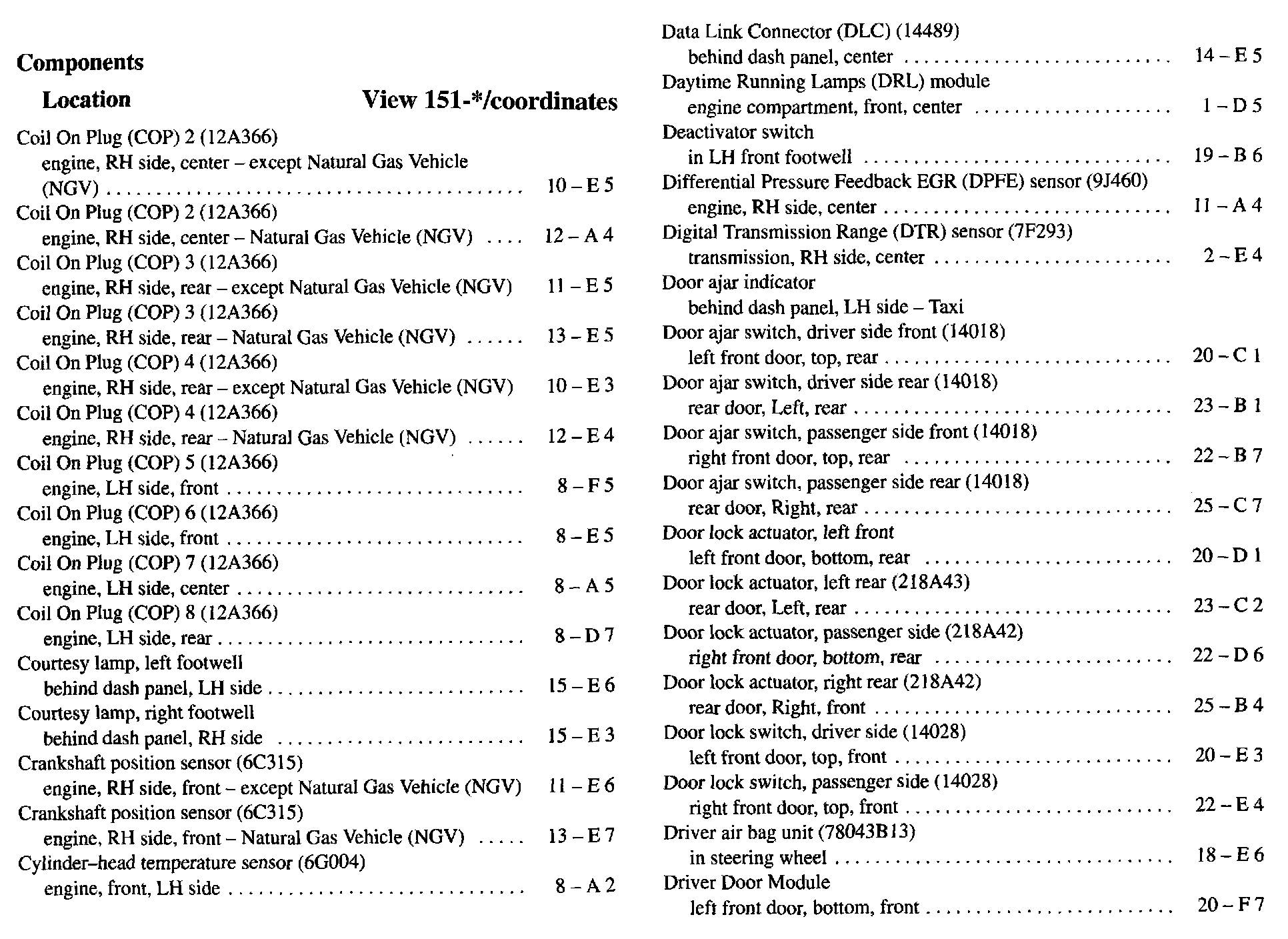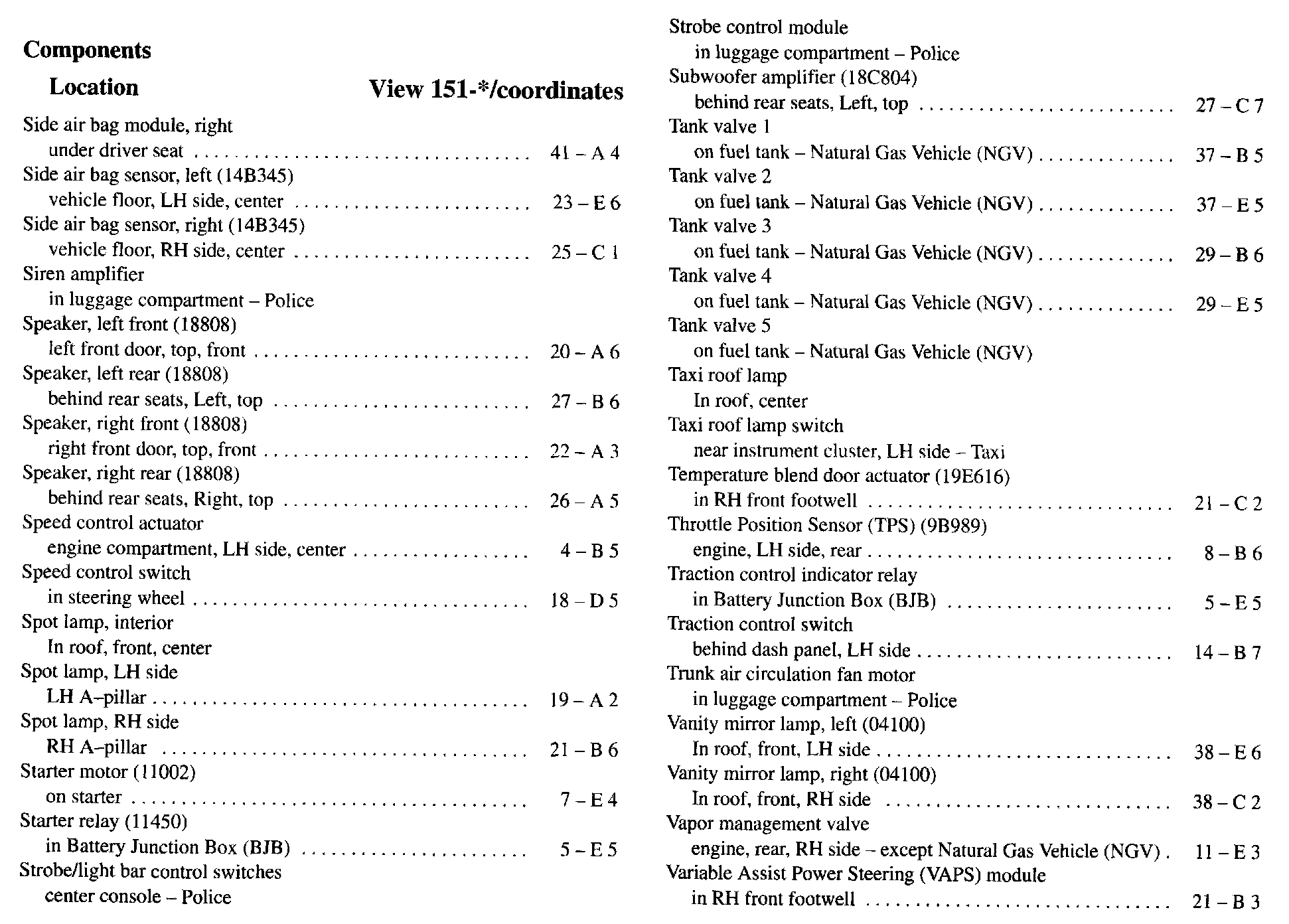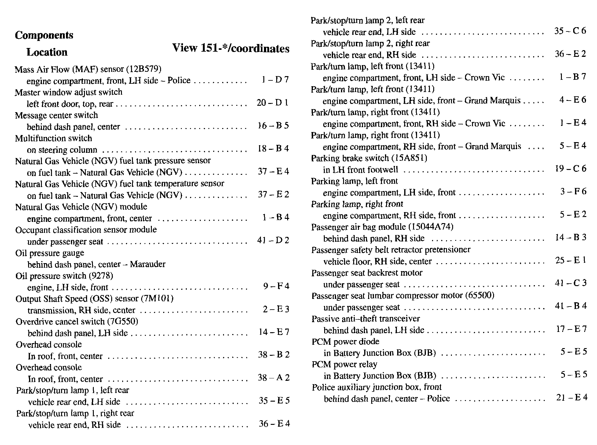 Component Location Index