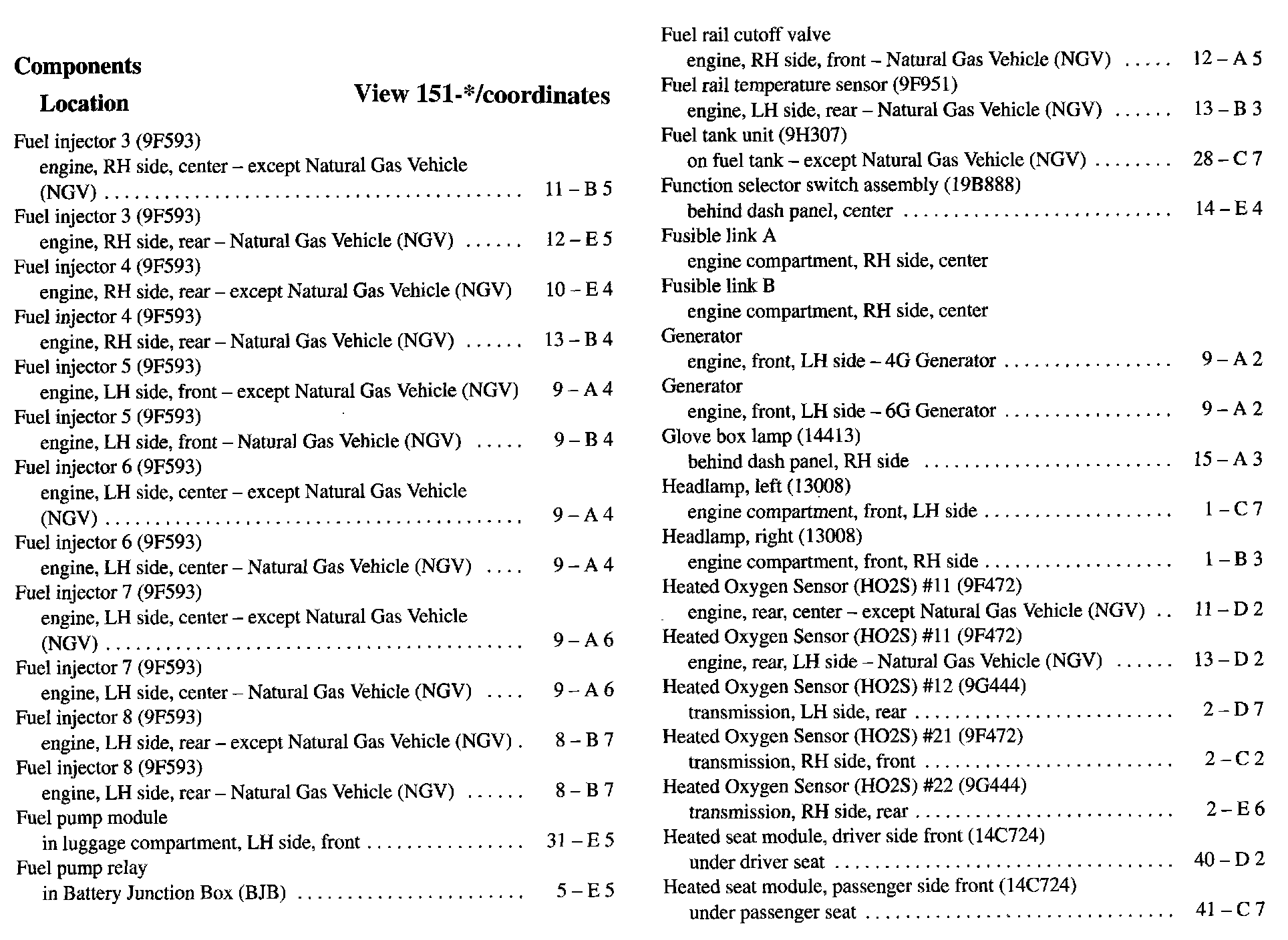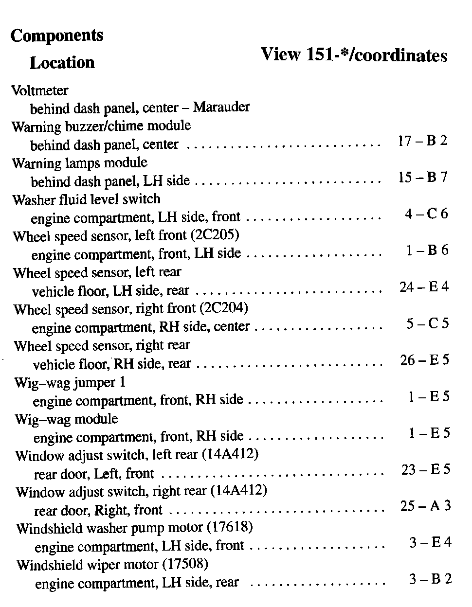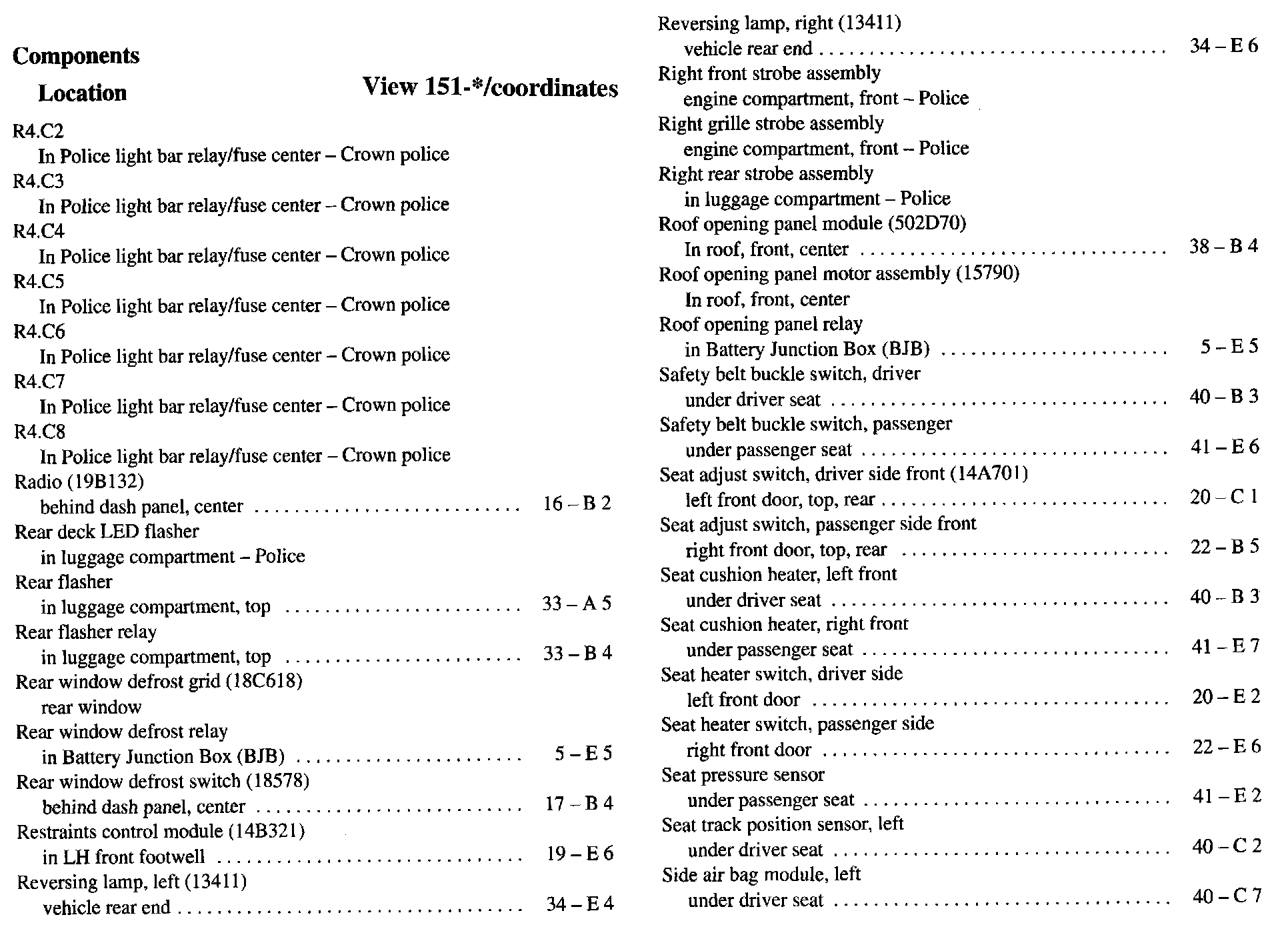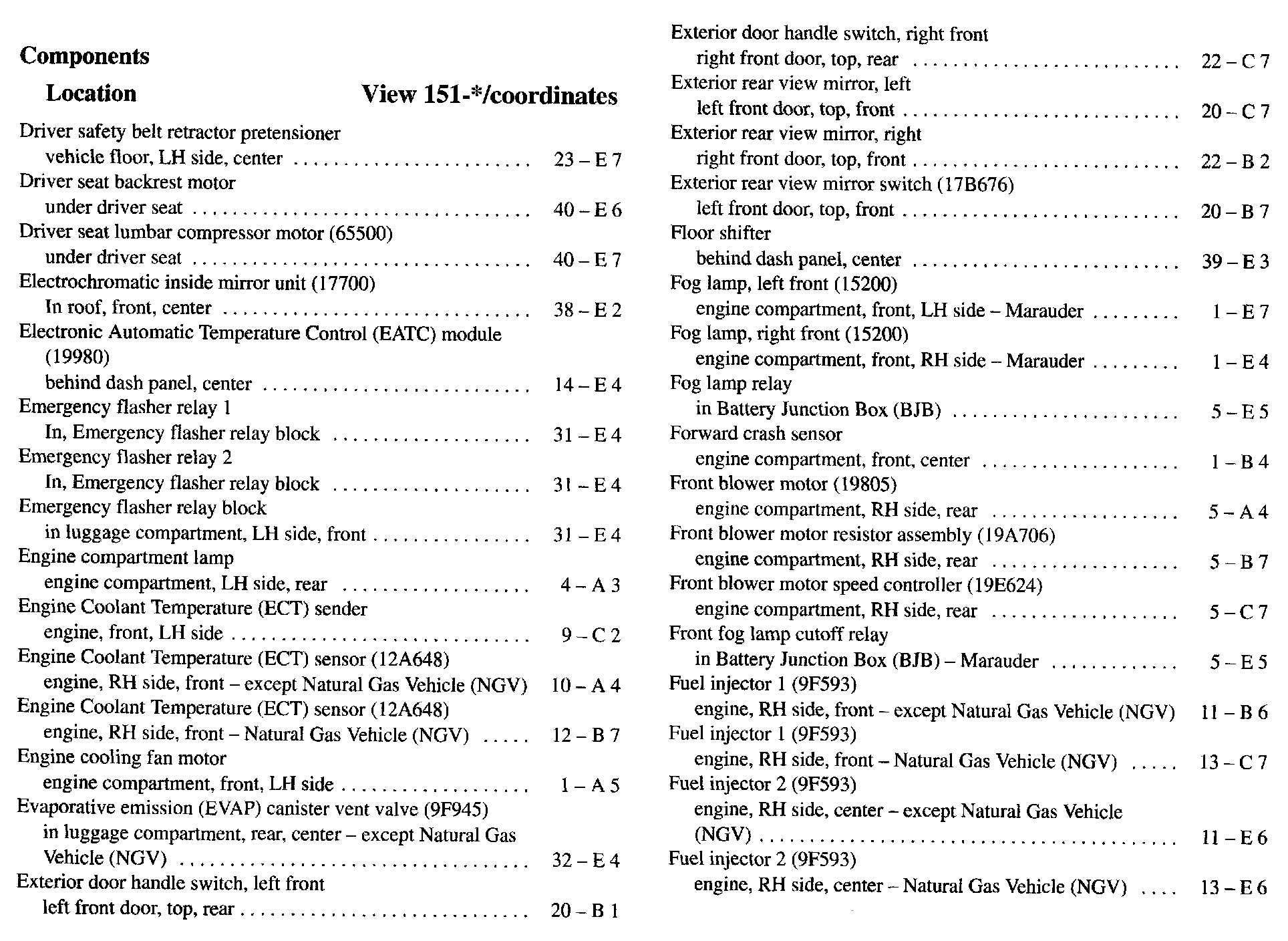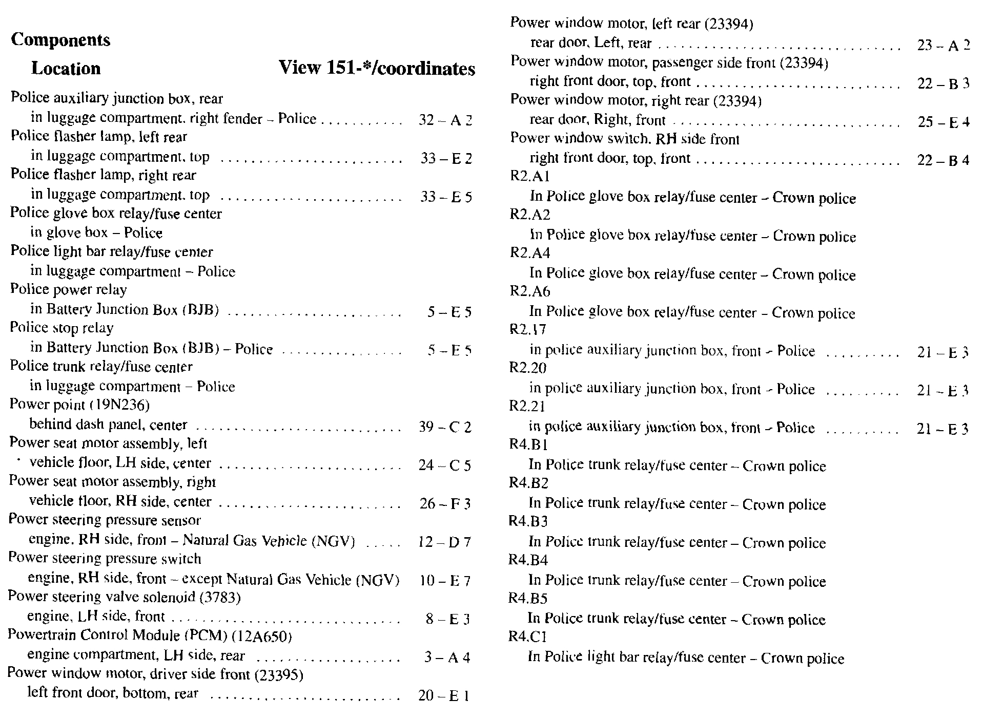 Component Location Index