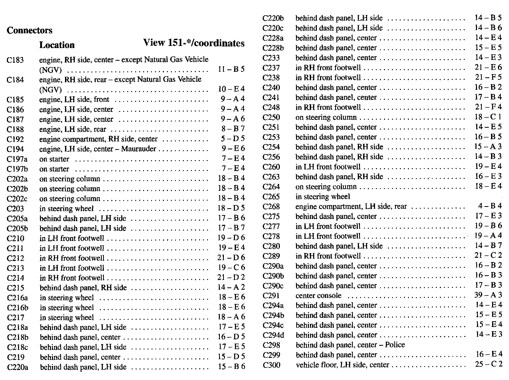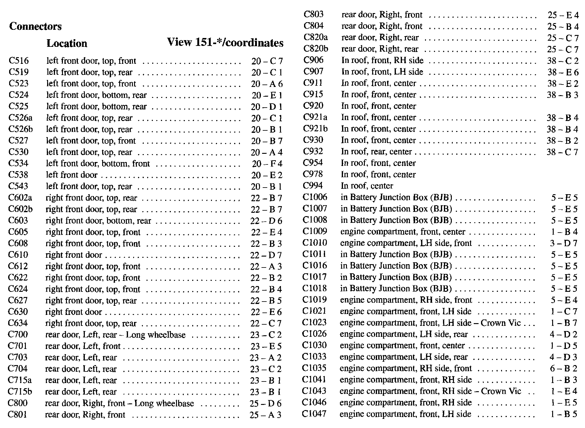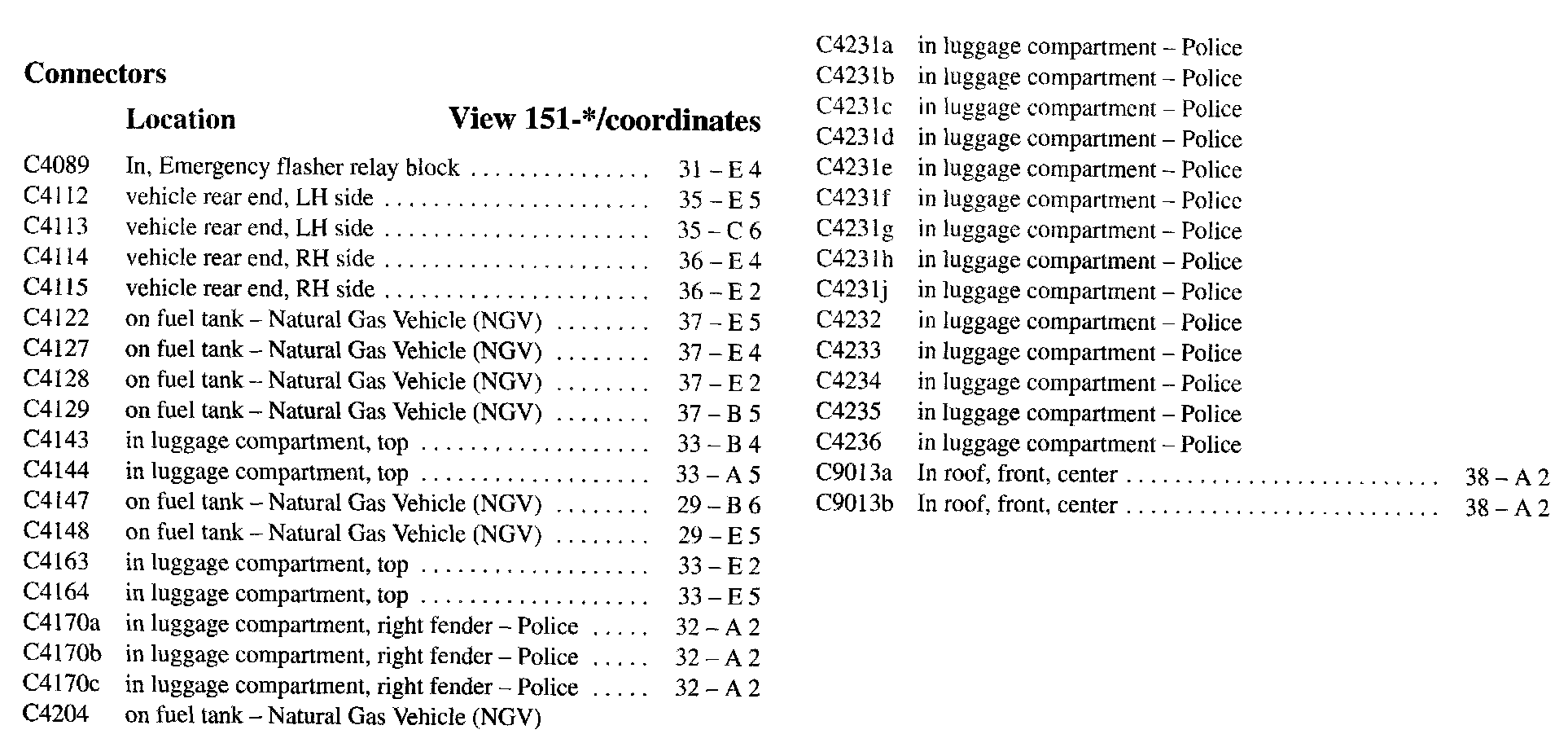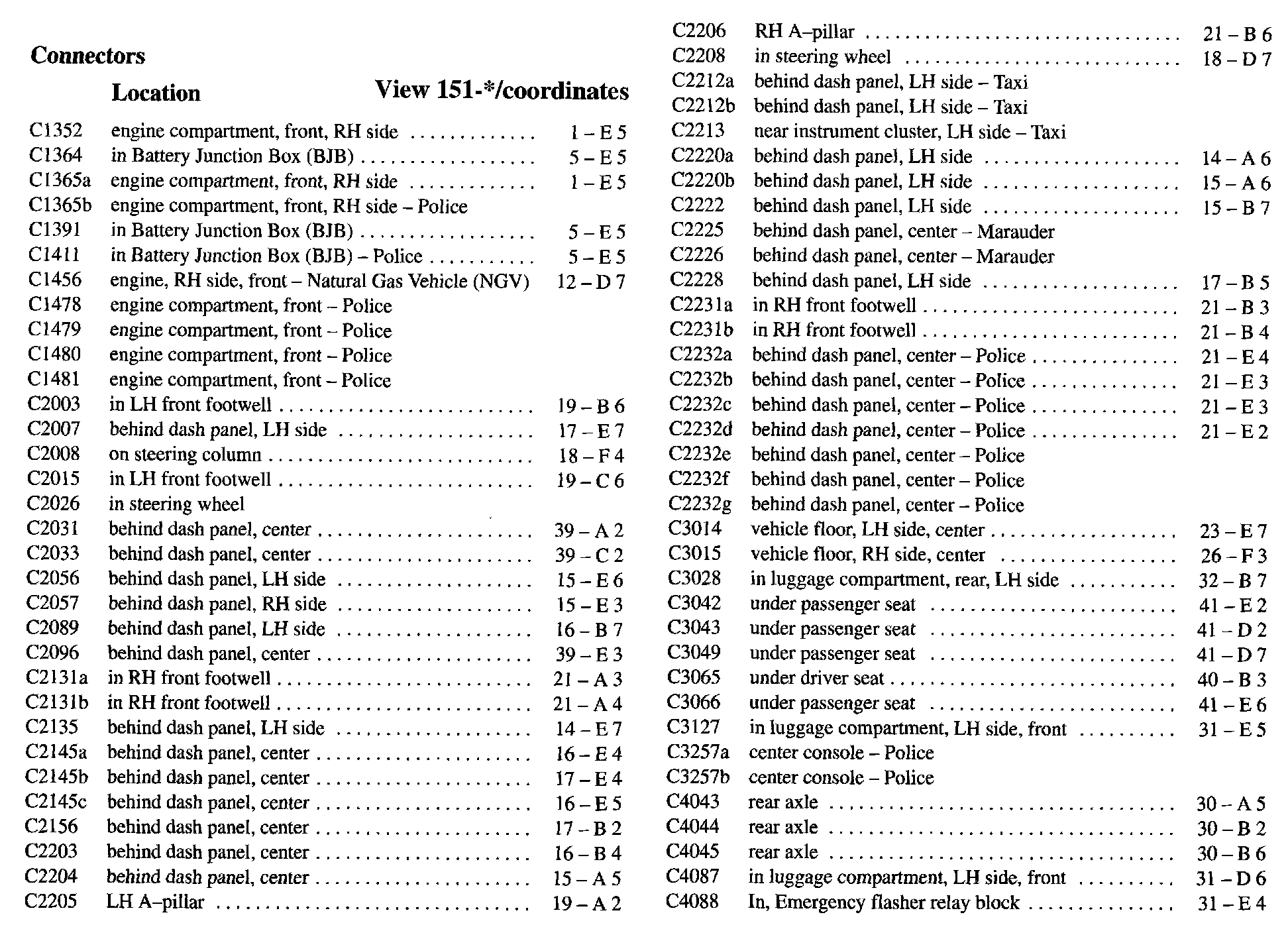 PLEASE NOTE: If a link on the Connector Location Index to a View is not provided, that means that the Connector and/or View in question does NOT apply to the vehicle model selected.