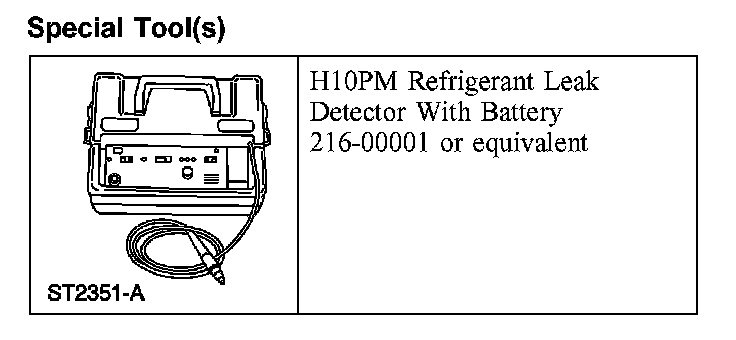 Leak test the refrigerant system using the Refrigerant Leak Detector. Follow the instructions included with the leak detector for handling and operation techniques.