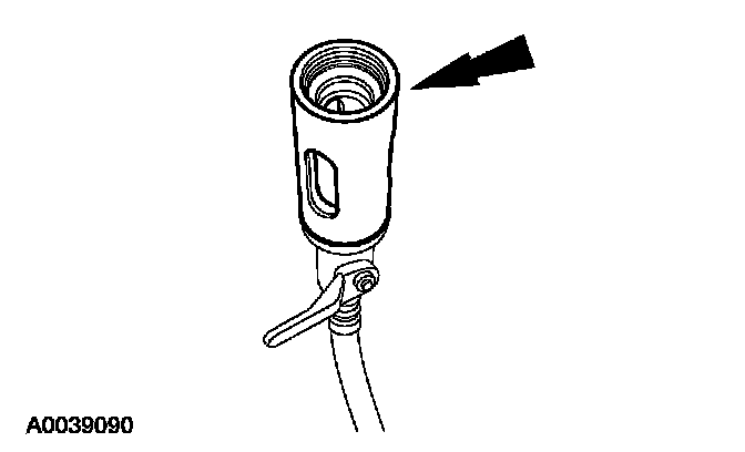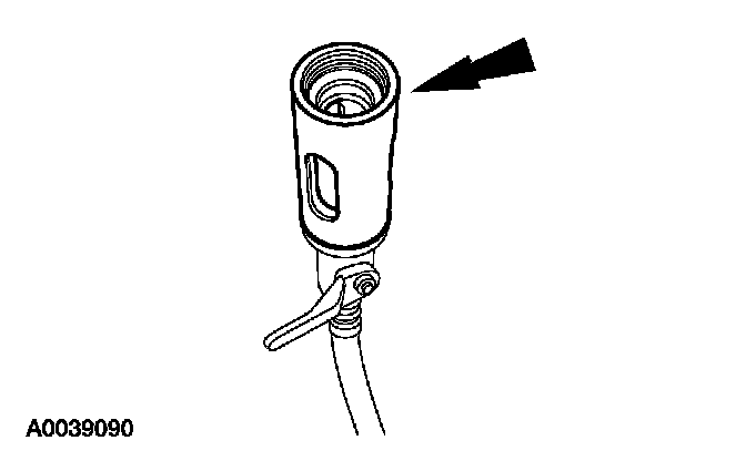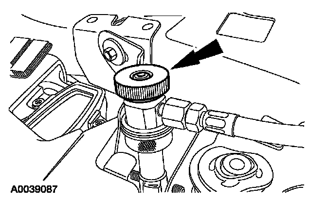 8. Remove the fluorescent dye injector from the low-pressure service gauge port valve and the R-134a A/C refrigerant service center or manifold gauge set.
