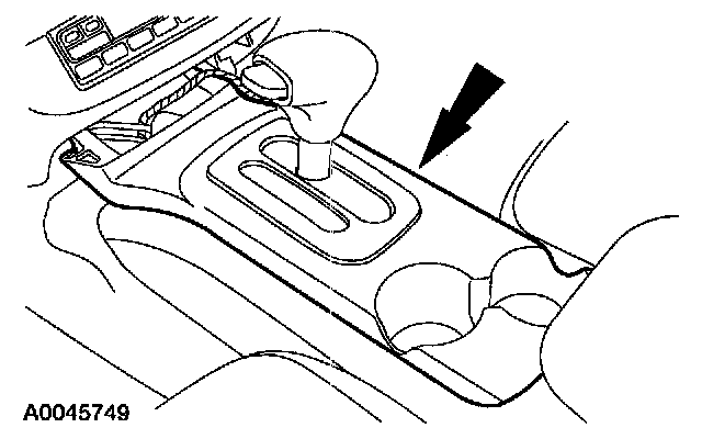 9. Pull up on the center console finish panel, releasing the retaining clips and rotate it out of the way.