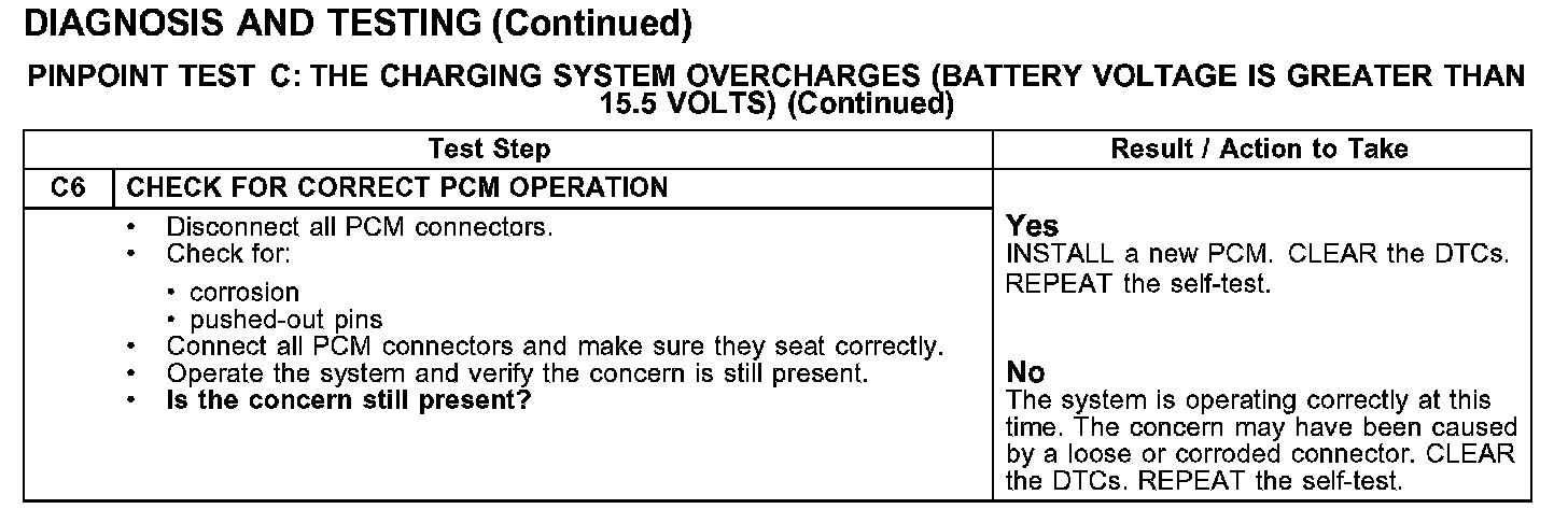 OVERCHARGES (BATTERY VOLTAGE IS GREATER THAN 15.5 VOLTS)