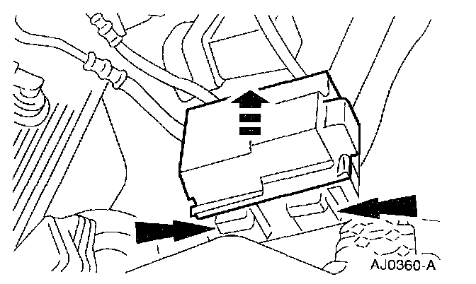 2. Press the clips inward and open the relay junction box.