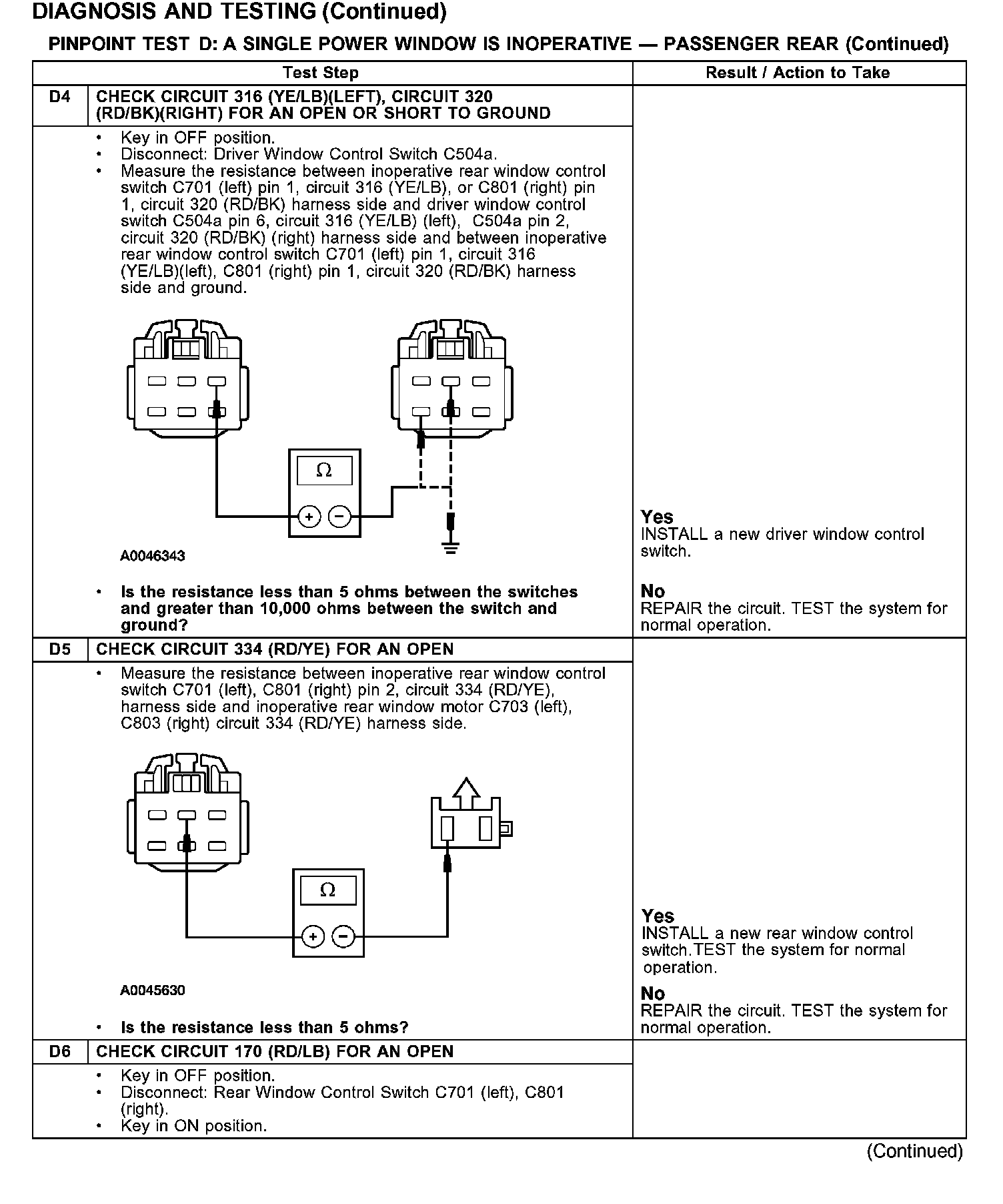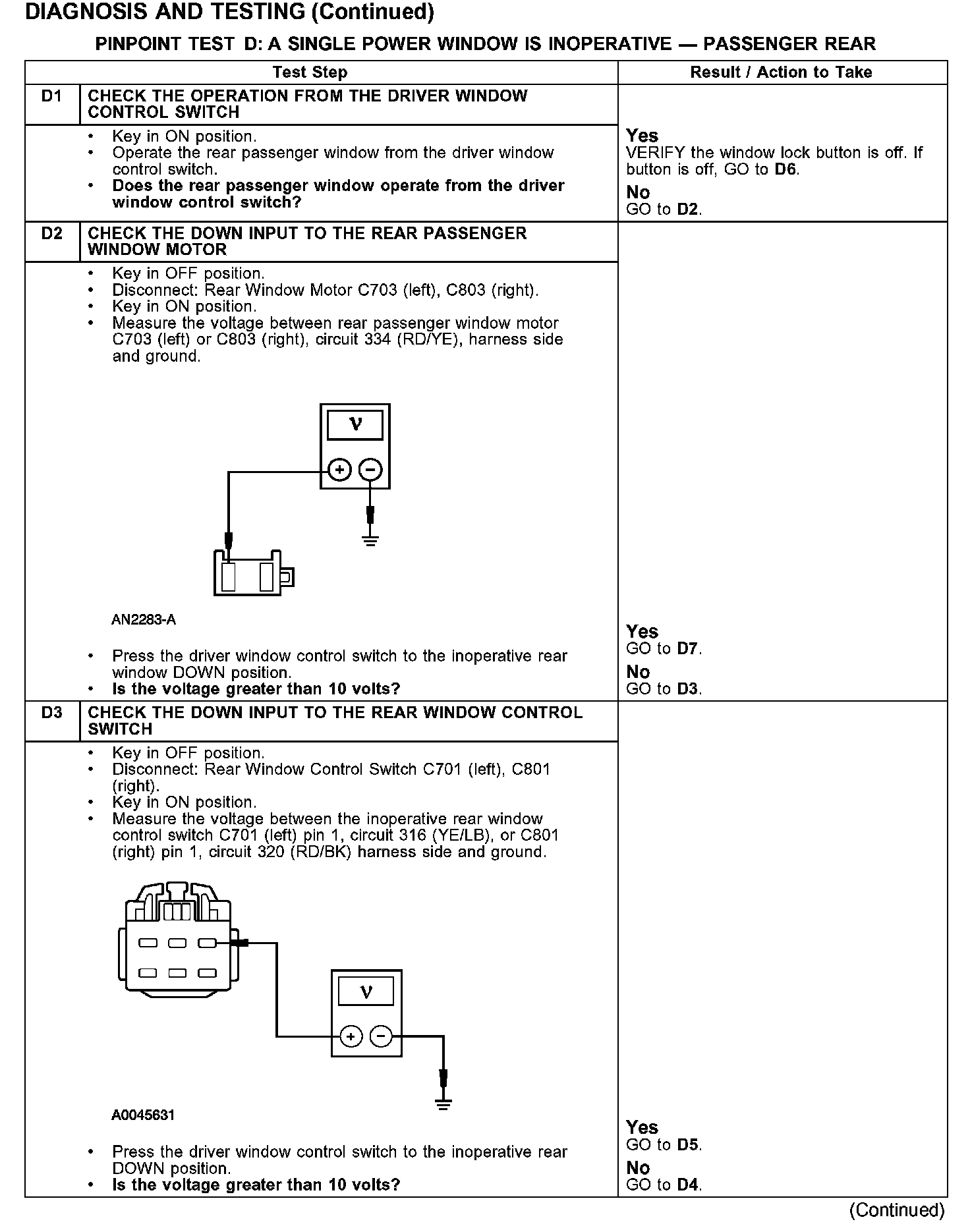 PINPOINT TEST D: A SINGLE POWER WINDOW IS INOPERATIVE - PASSENGER REAR